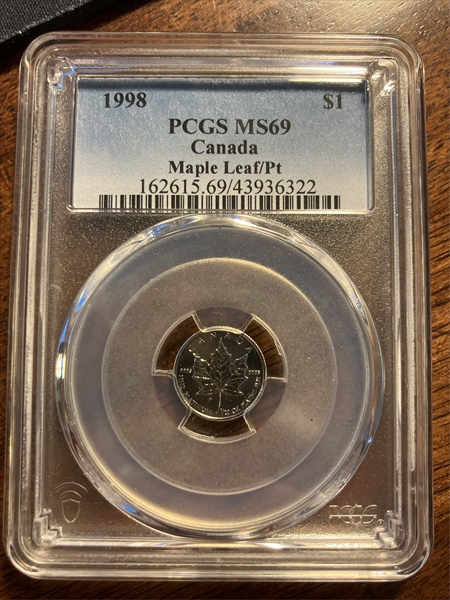 1998 $1 Maple Leaf/Pt MS69 Certification #43936322, PCGS #162615