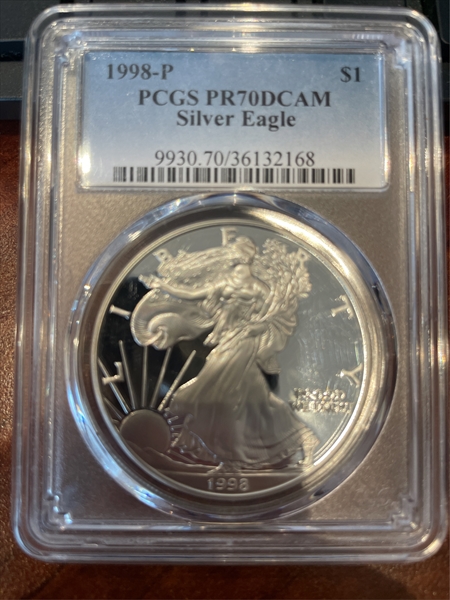 1998-P $1 Silver Eagle, DCAM PR70DCAM Certification #36132168, PCGS #9930