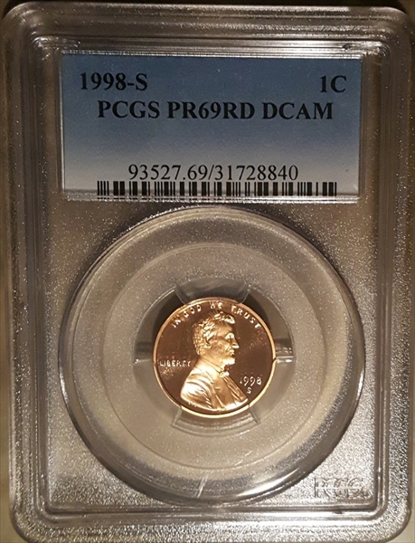 1998-S 1C, DCAM PR69DCAM Certification #31728840, PCGS #93527