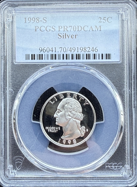 1998-S 25C Silver, DCAM PR70DCAM Certification #49198246, PCGS #96041