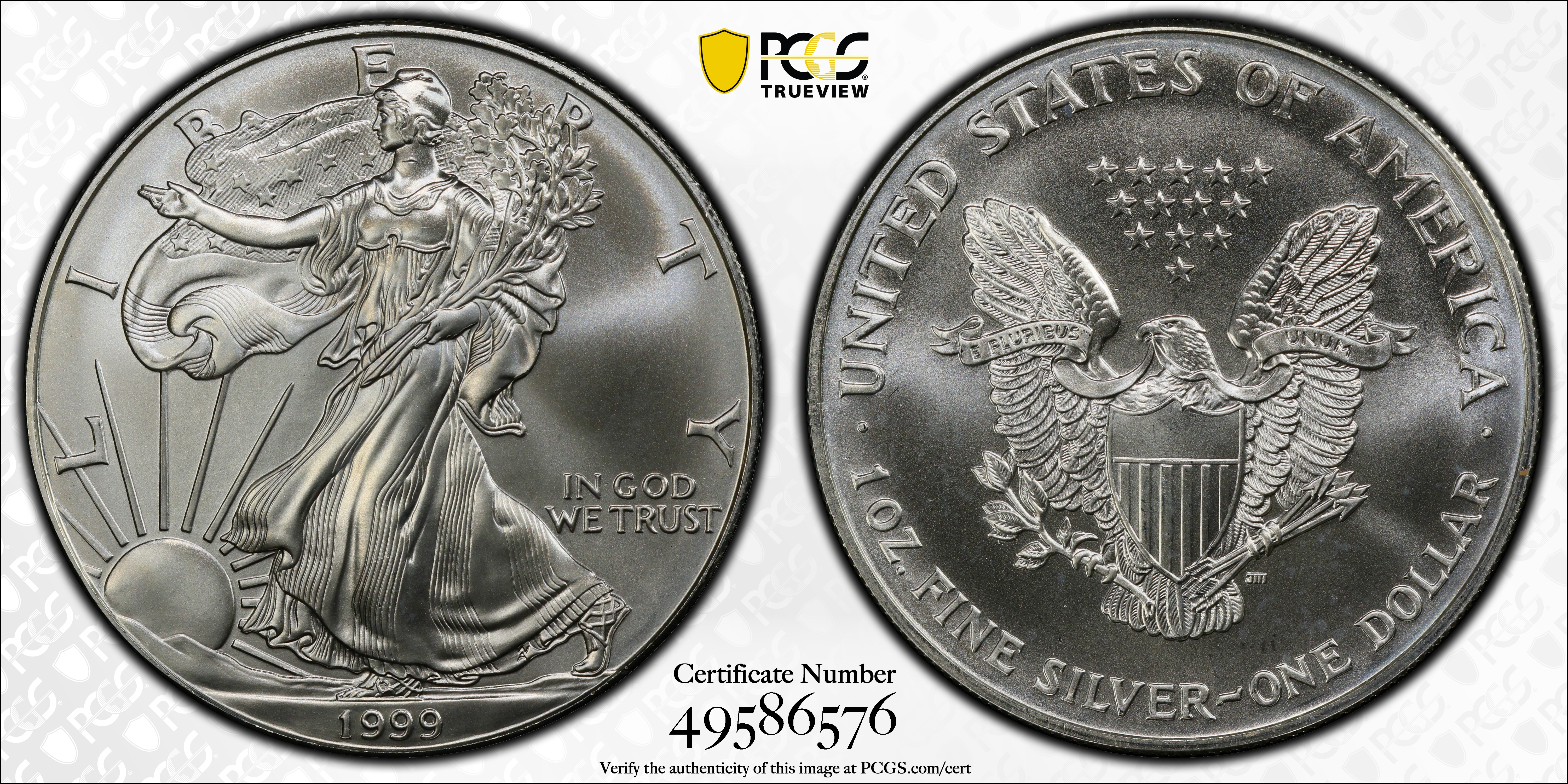 1999 $1 Silver Eagle MS68 Certification #49586576, PCGS #9947
