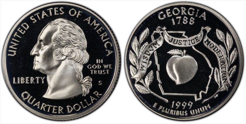 1999-S 25C Georgia Silver, DCAM PR70DCAM Certification #44312157, PCGS #913004