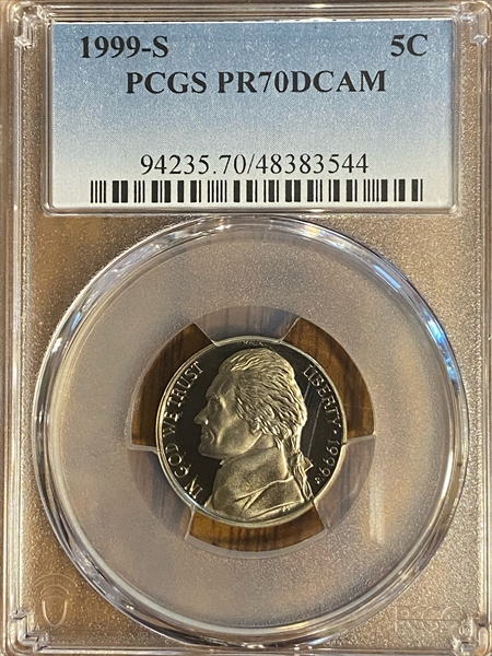 1999-S 5C, DCAM PR70DCAM Certification #48383544, PCGS #94235