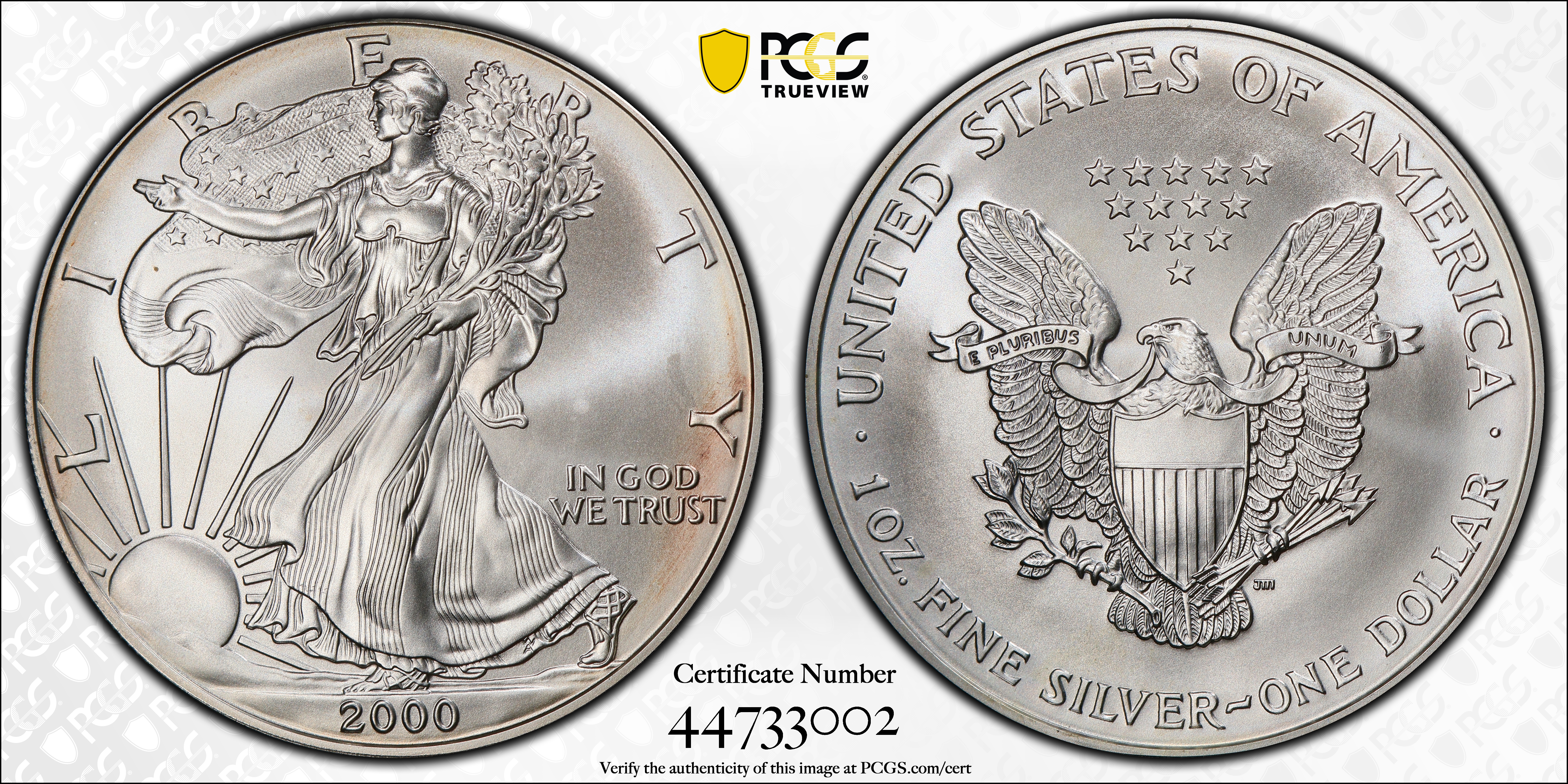 In the year 2000, the U.S Mint issued a special United States Millennium Coin and Currency Set. The sets contained a Silver Eagle, a Sacagawea Dollar and a $1 currency note. The Sacagawea Dollars in the set had a different finish than circulation strike coins. In order to receive the Millennium Set phrase on the PCGS holder, collectors had to submit their coins in the original sealed Millennium Coinage and Currency Set.