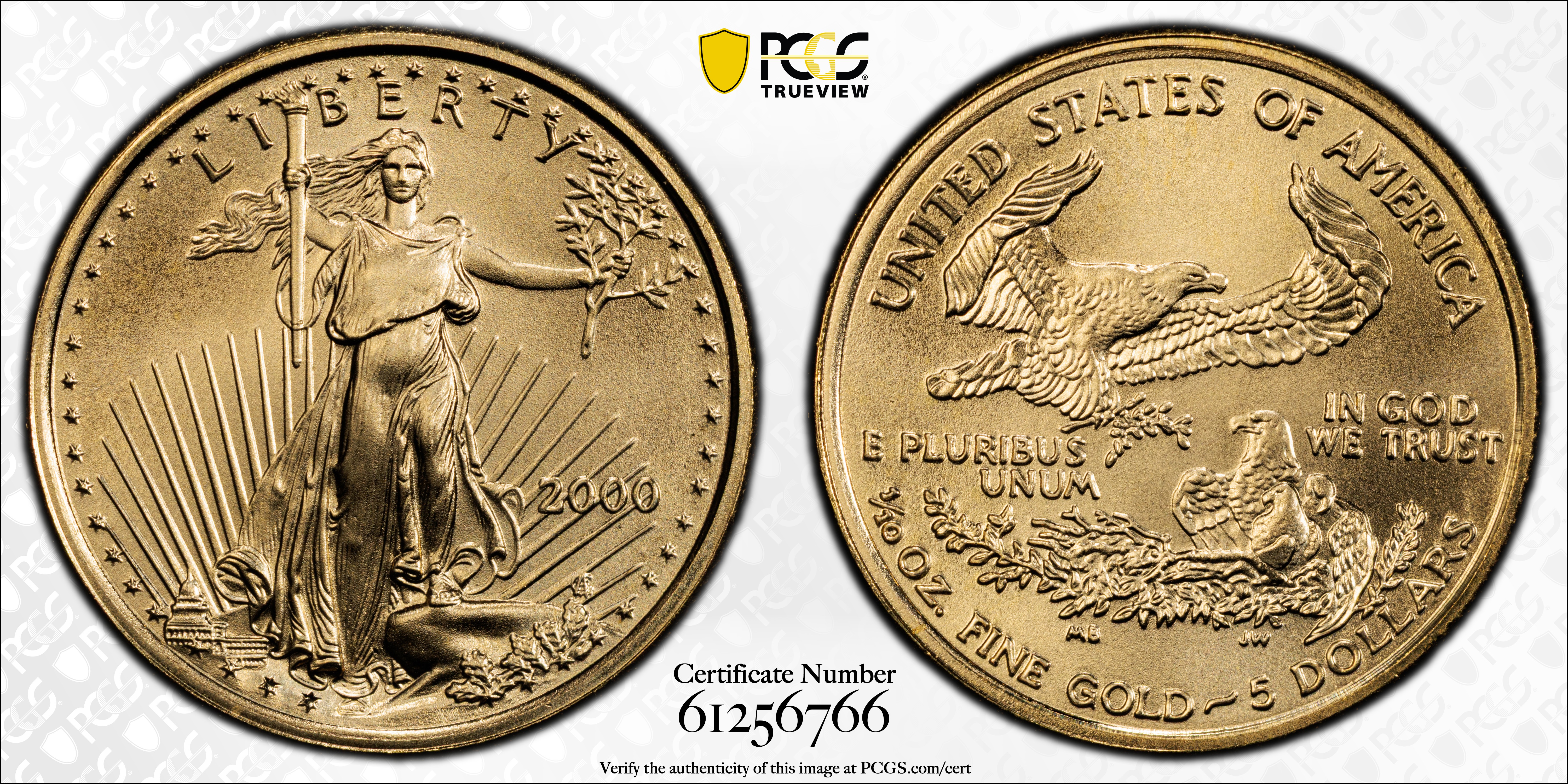 2000 $5 Gold Eagle MS70 Certification #61256766, PCGS #9950