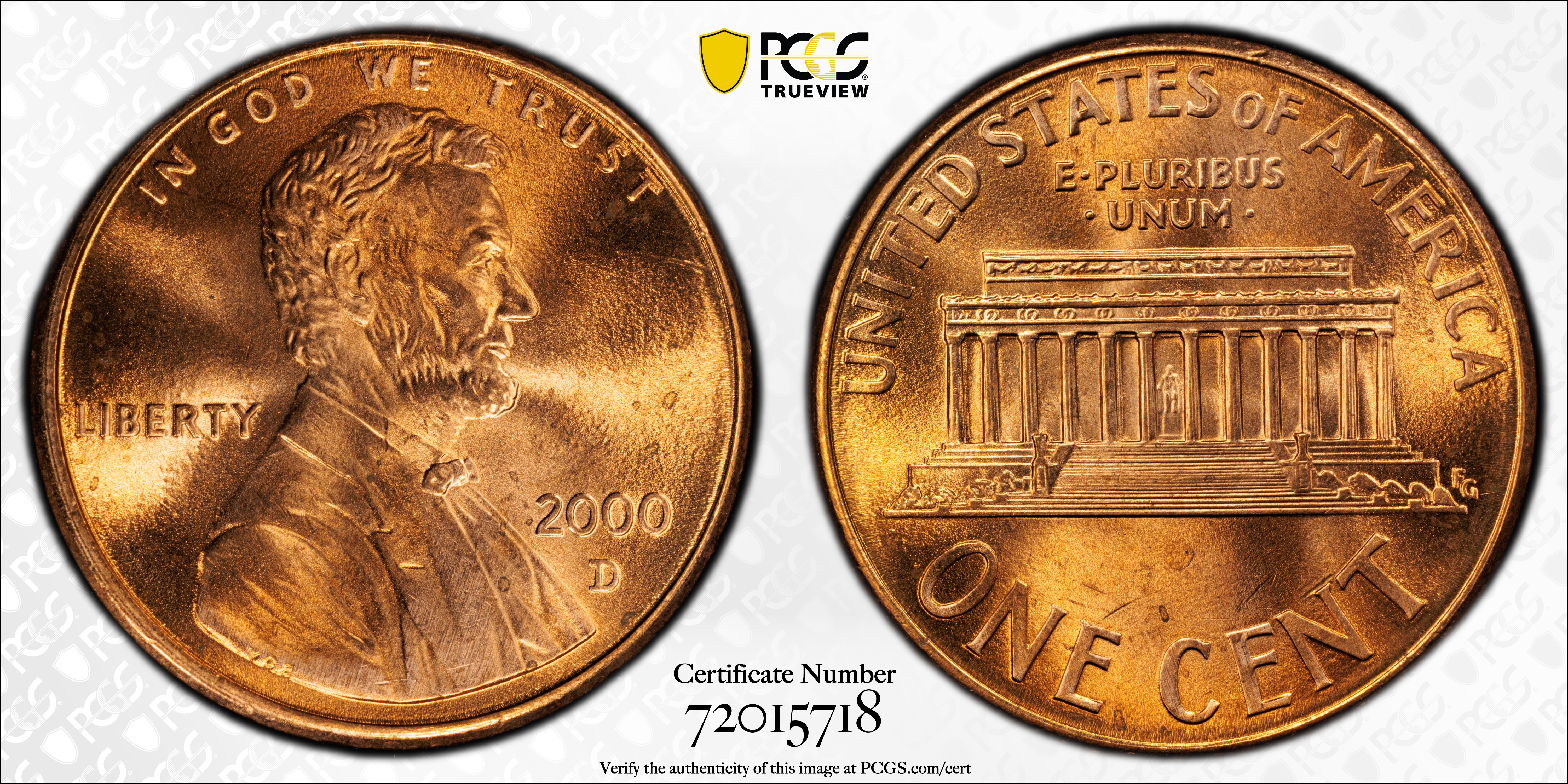 2000-D 1C, RD MS68RD Certification #72015718, PCGS #3163