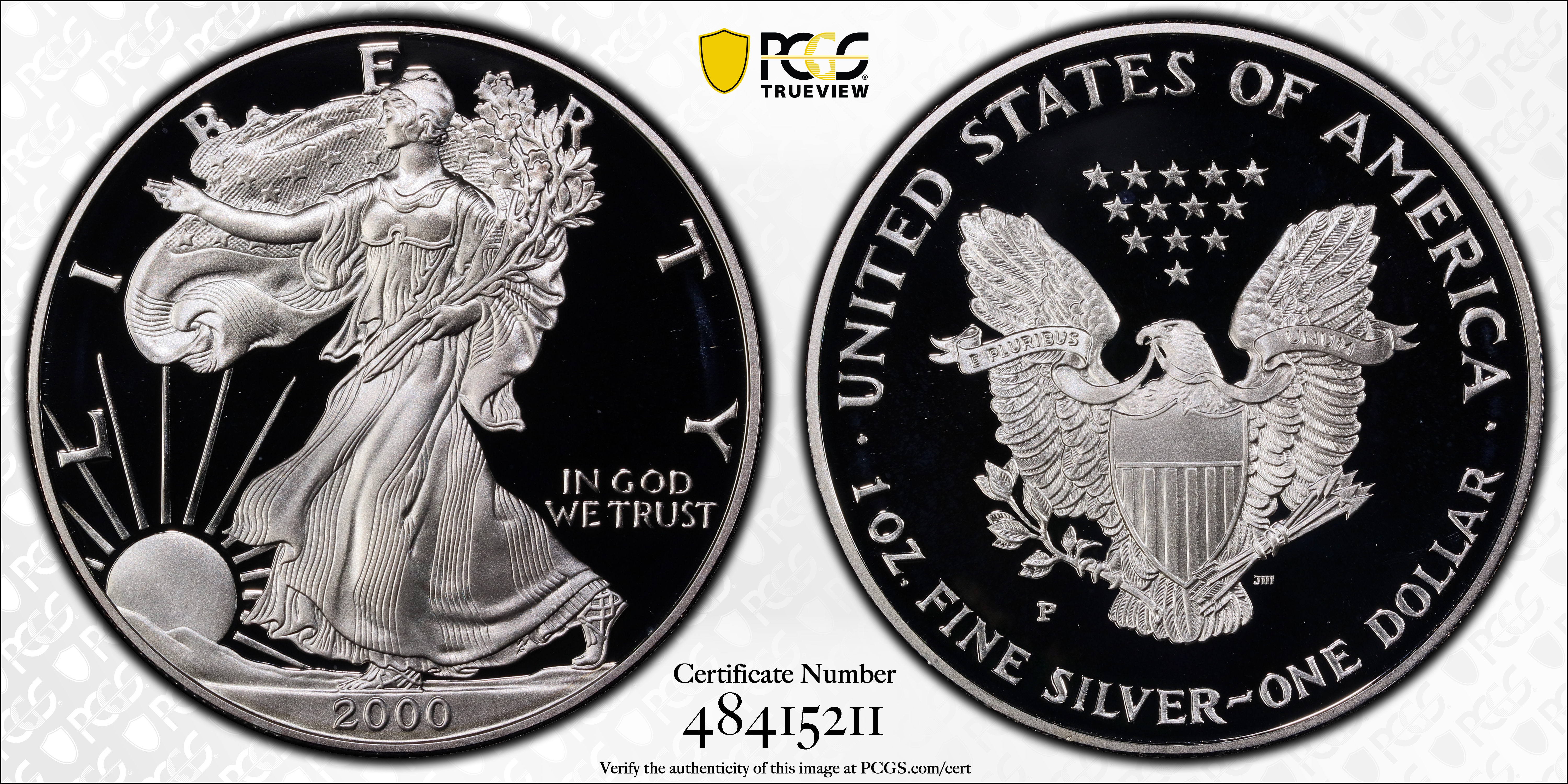 2000-P $1 Silver Eagle, DCAM PR69DCAM Certification #48415211, PCGS #99949
