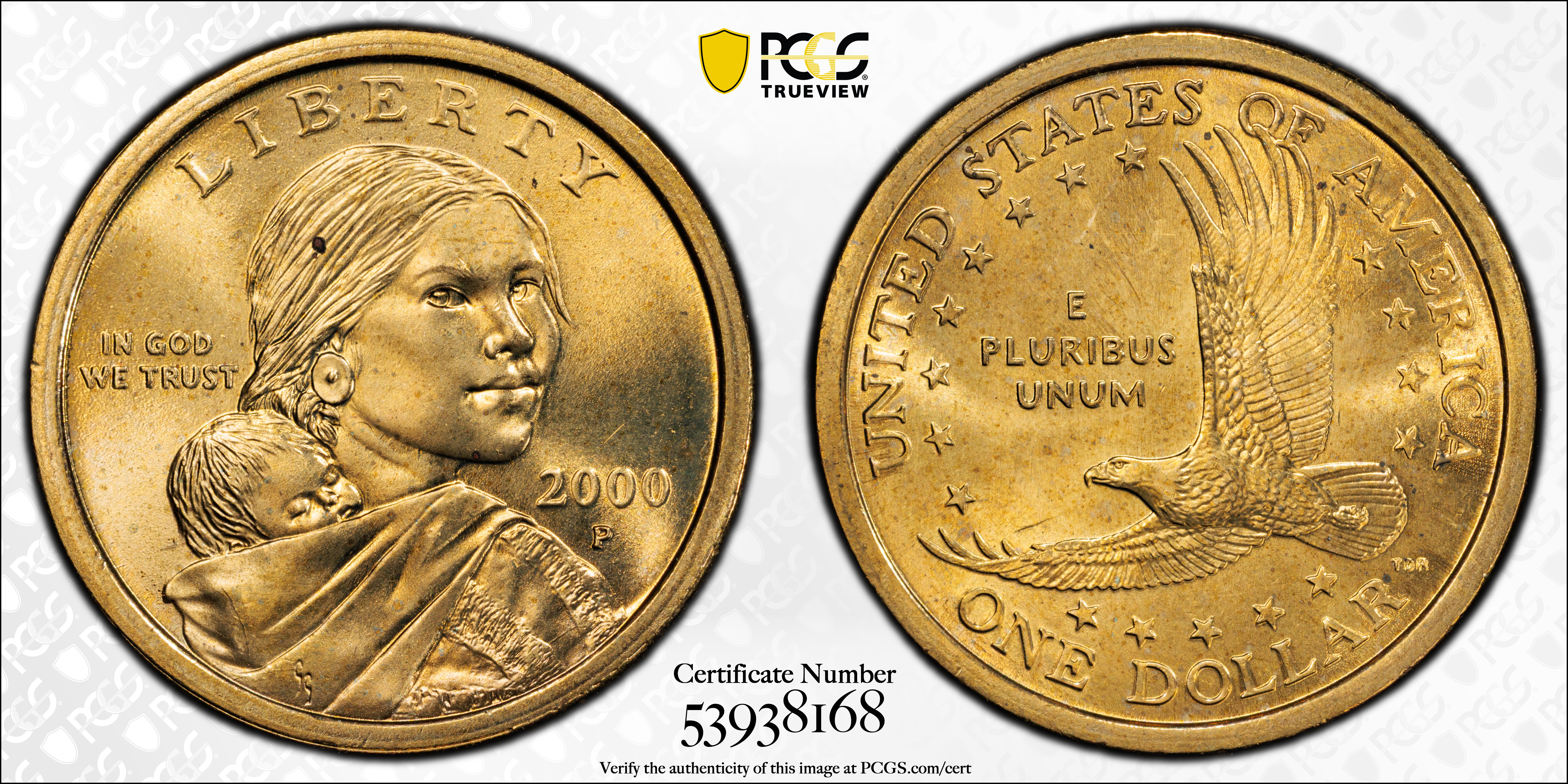 2000-P SAC$1 MS65 Certification #53938168, PCGS #9584