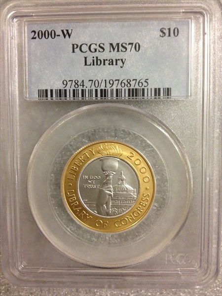 2000-W $10 Library of Congress Bimetallic MS70 Certification #19768765, PCGS #9784