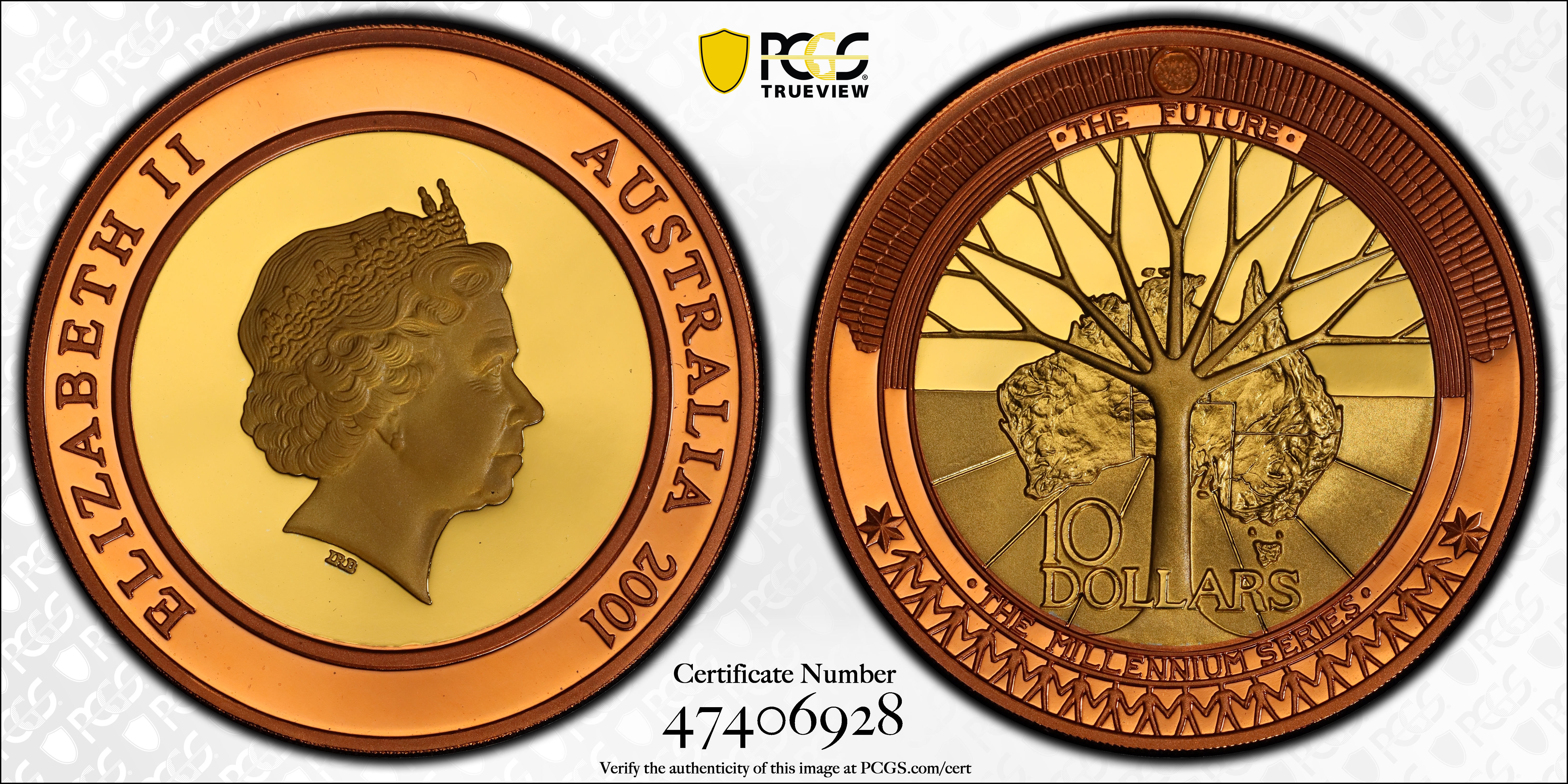 2001 $10 The Future, DCAM PR70DCAM Certification #47406928, PCGS #391589