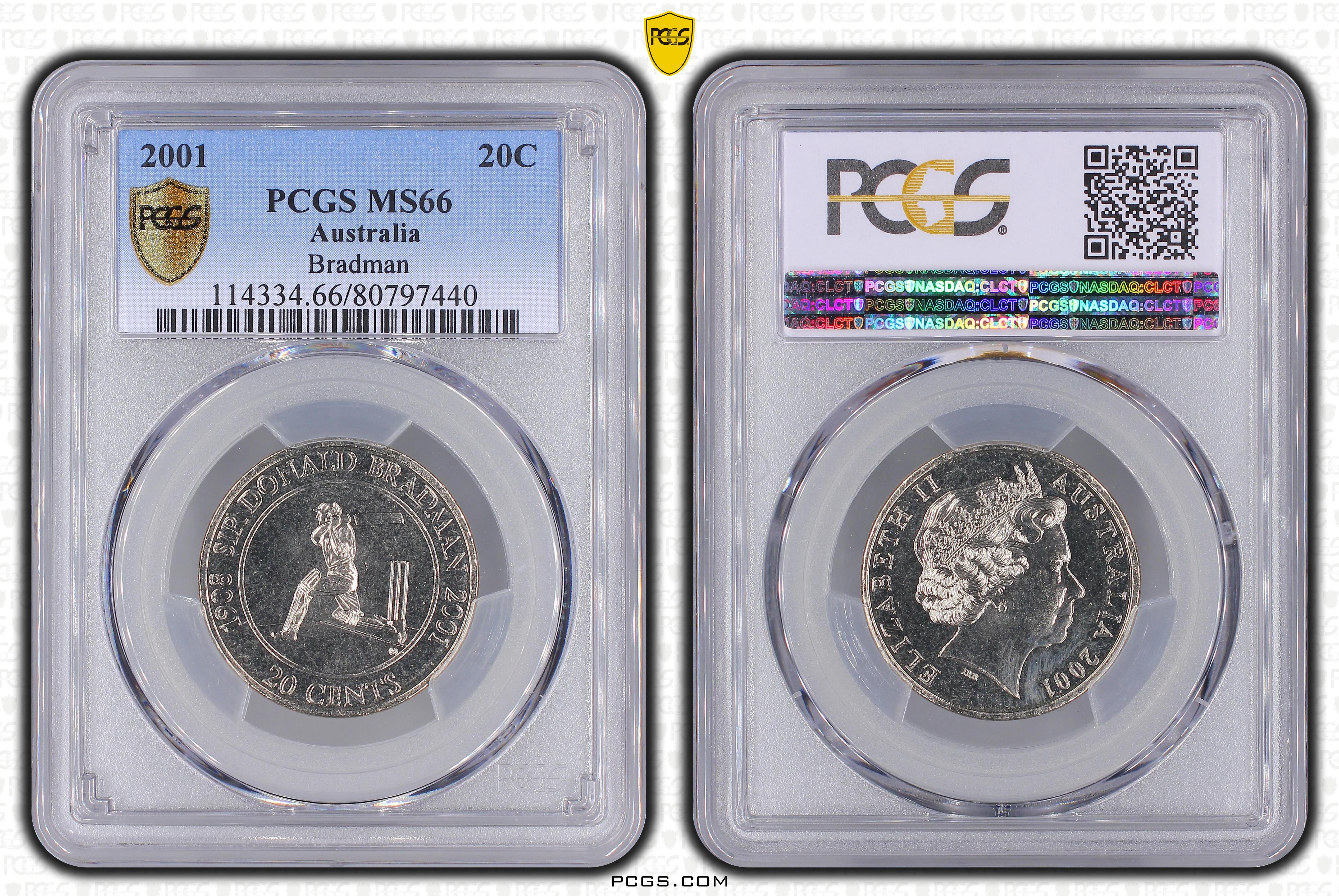 2001 20C Bradman MS66 Certification #80797440, PCGS #114334