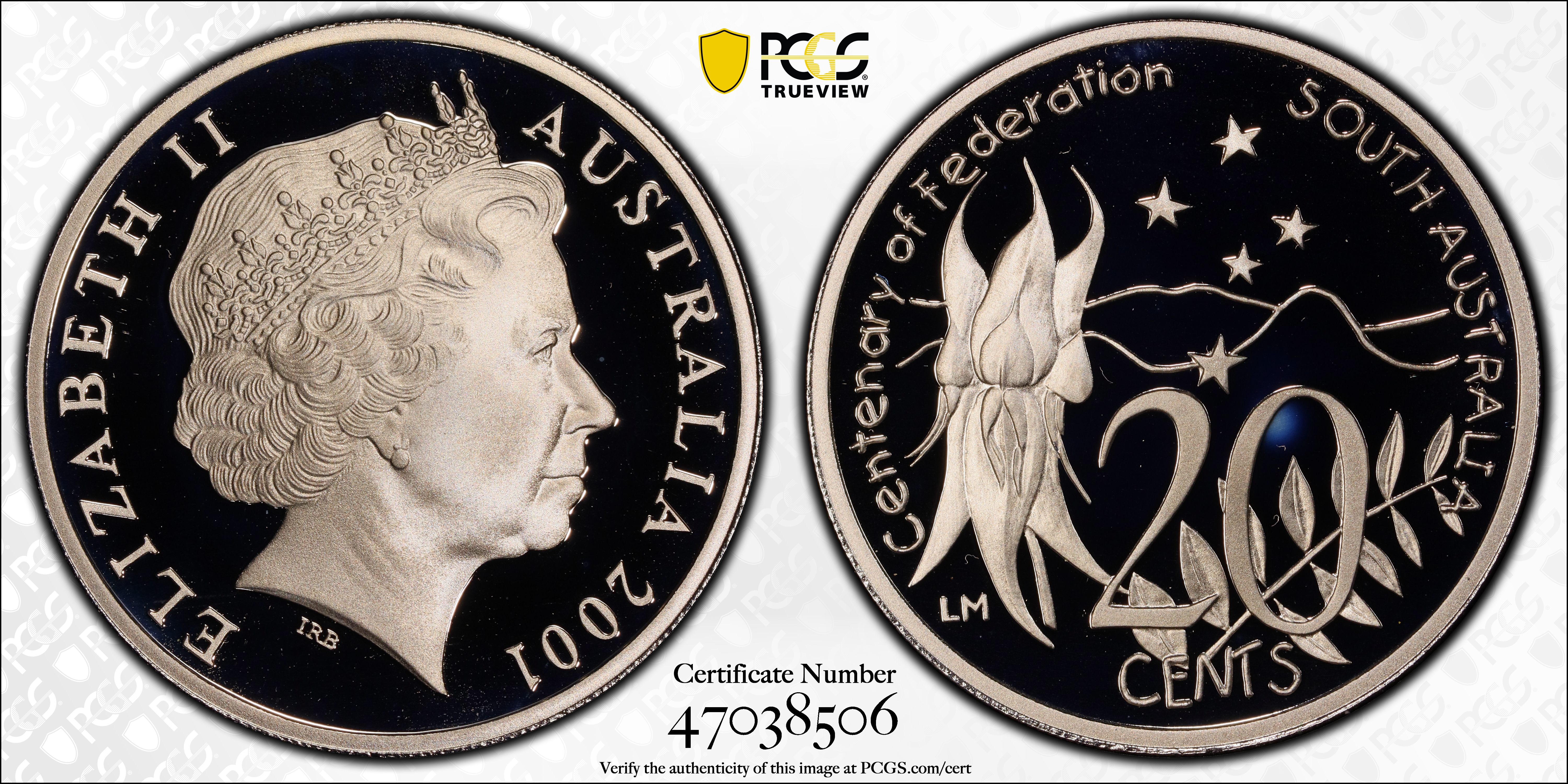 2001 20C South Australia, DCAM PR69DCAM Certification #47038506, PCGS #393991