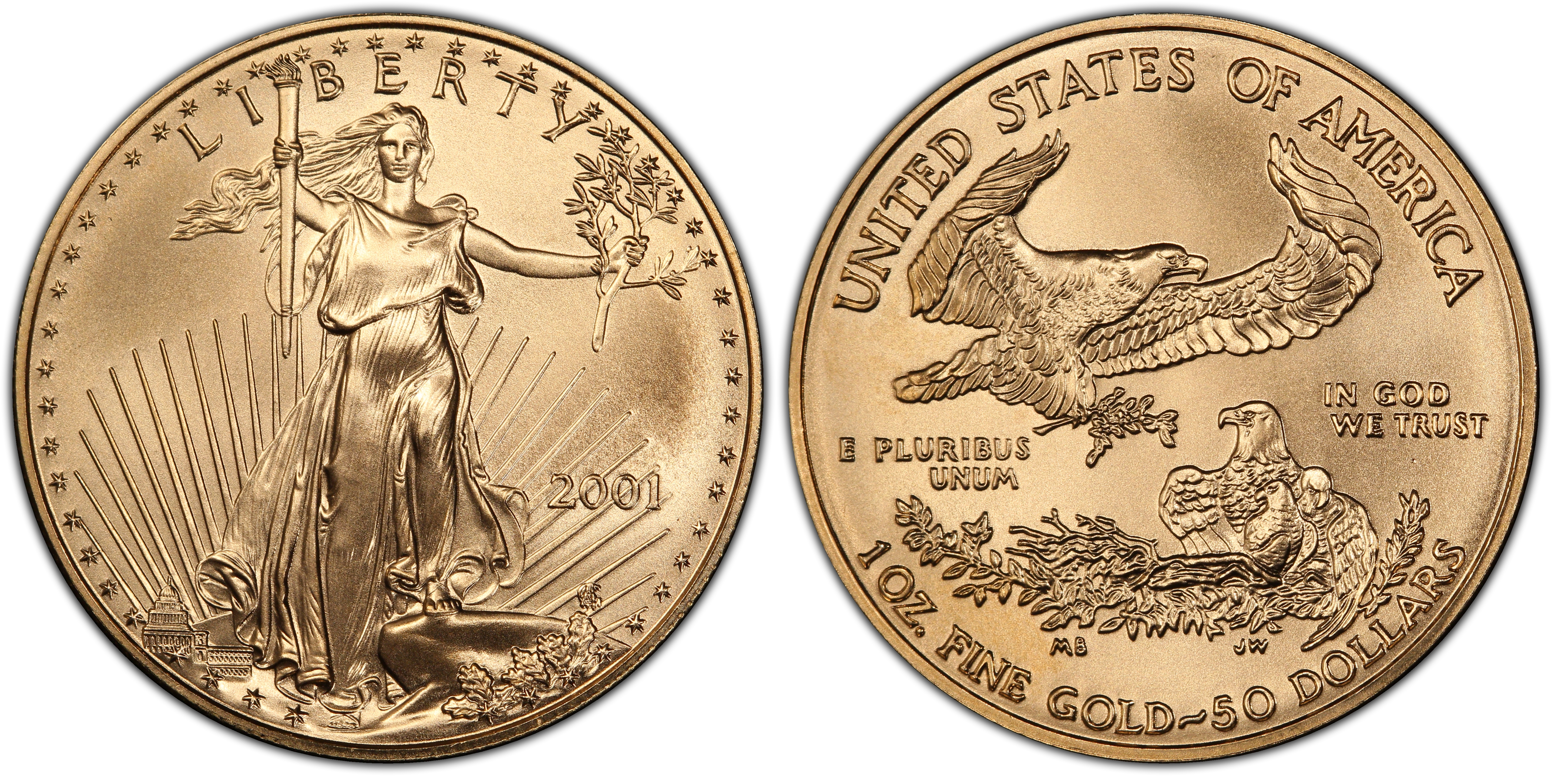 2001 $50 Gold Eagle MS70 Certification #82667751, PCGS #9958