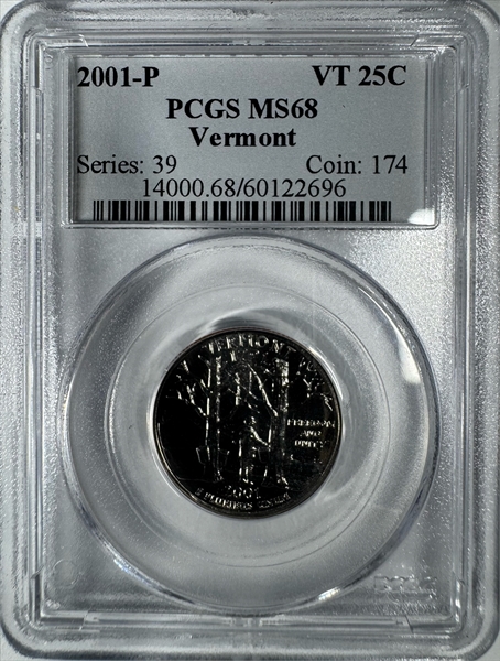 2001-P 25C Vermont MS68 Certification #60122696, PCGS #14000