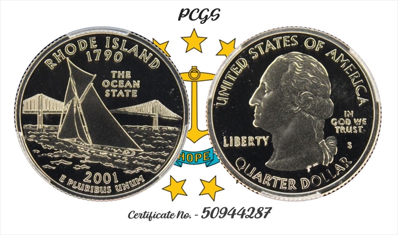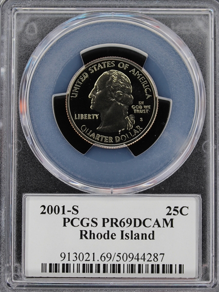 2001-S 25C Rhode Island, DCAM PR69DCAM Certification #50944287, PCGS #913021