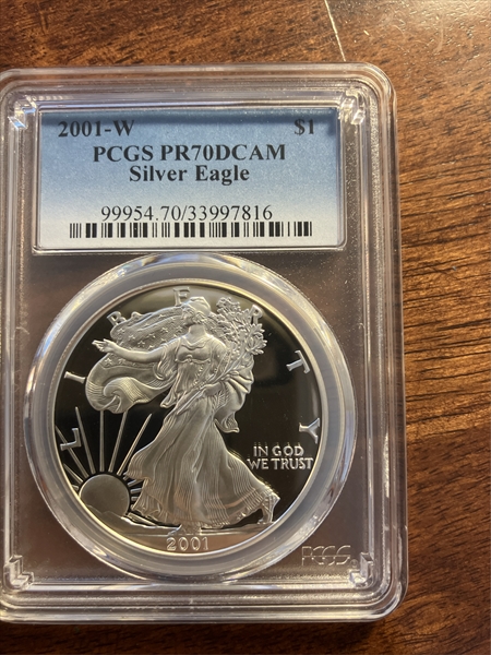 The 2001-W Proof Silver Eagles tend to come in very nice quality ranging from about PR68 to PR69 Deep Cameo condition. Perfect PR70 Deep Cameo examples were a little harder to find but with enough searching collectors can find a perfect example.