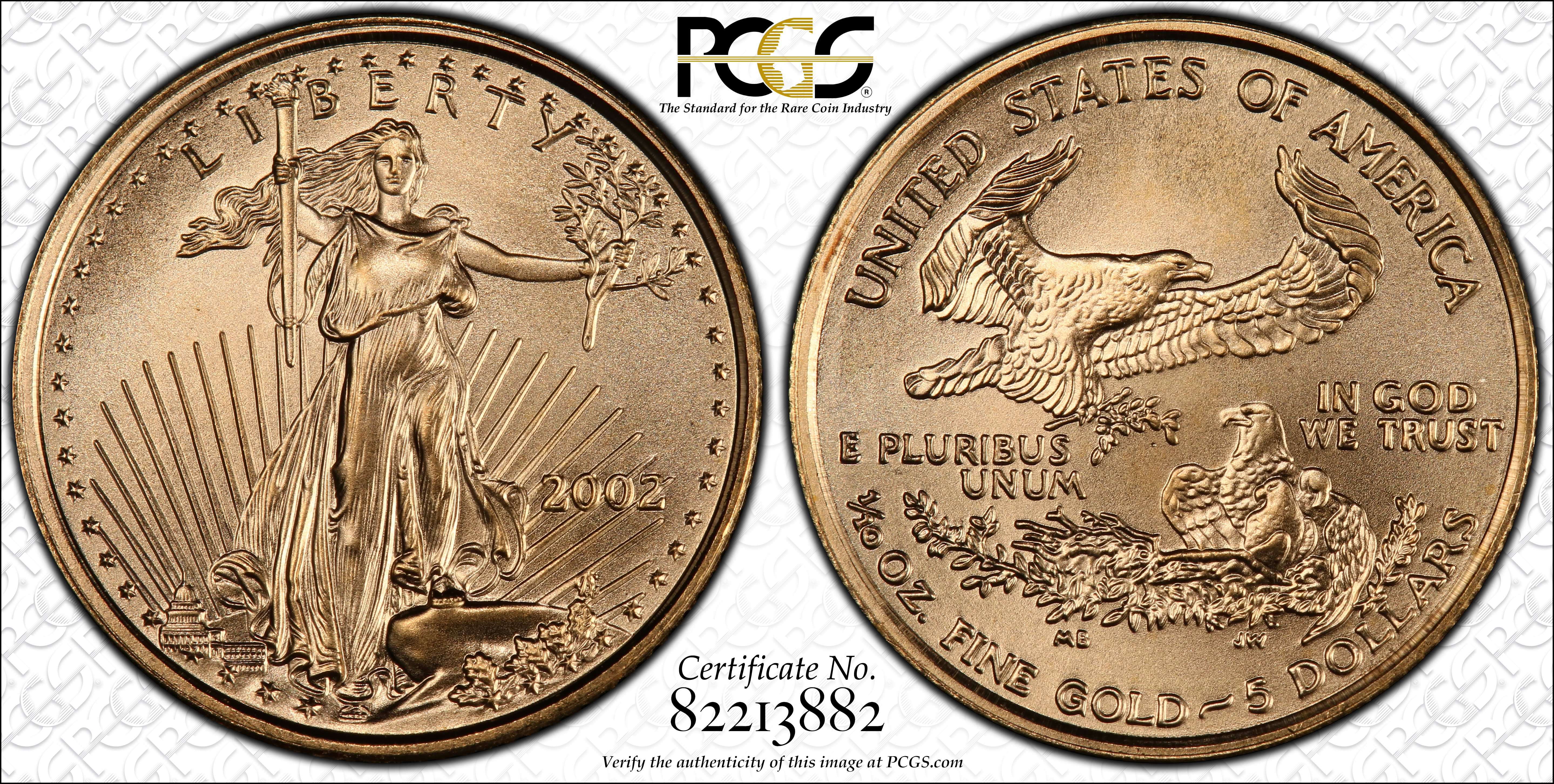 2002 $5 Gold Eagle MS69 Certification #82213882, PCGS #9960