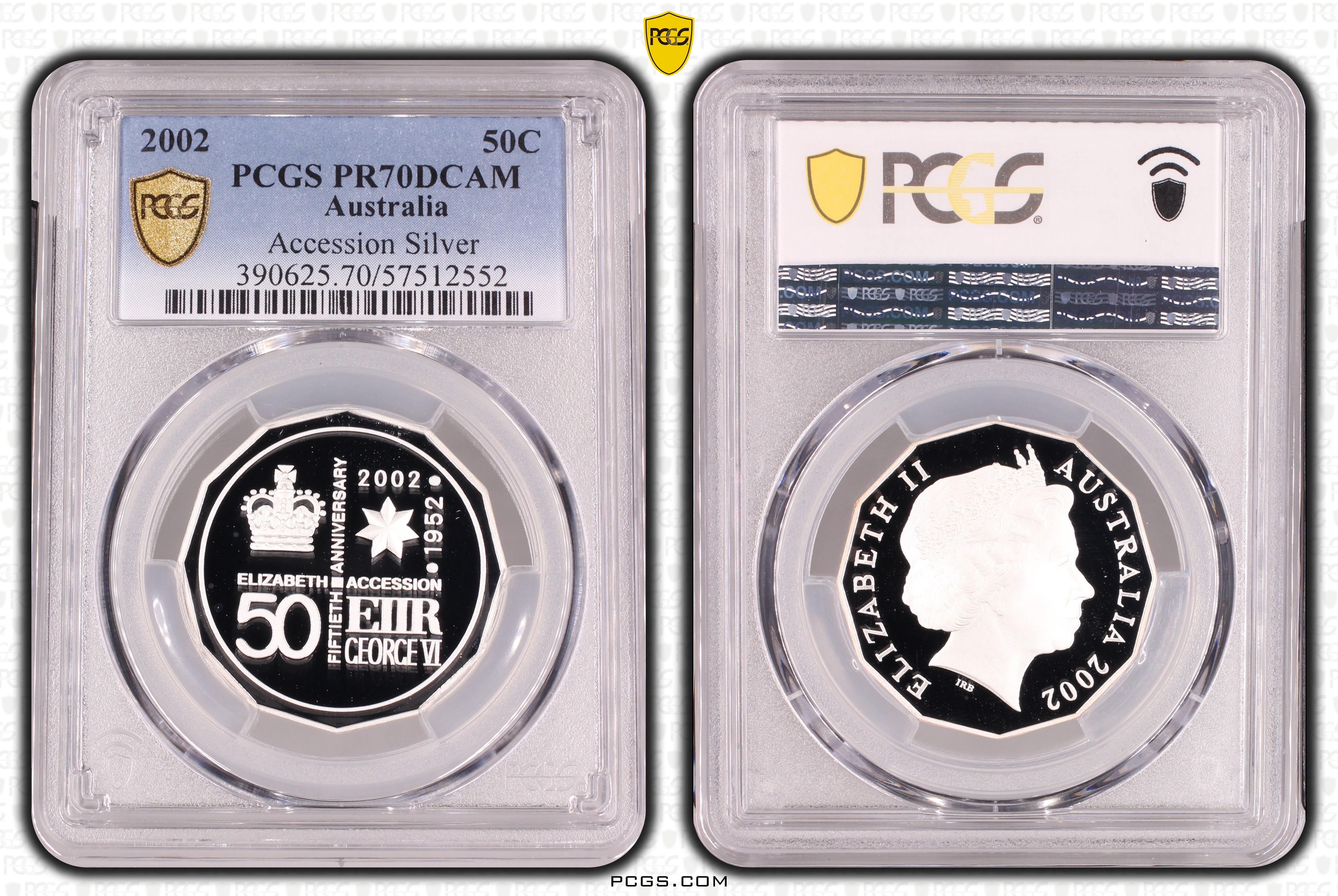 2002 50C Accession Silver, DCAM PR70DCAM Certification #57512552, PCGS #390625