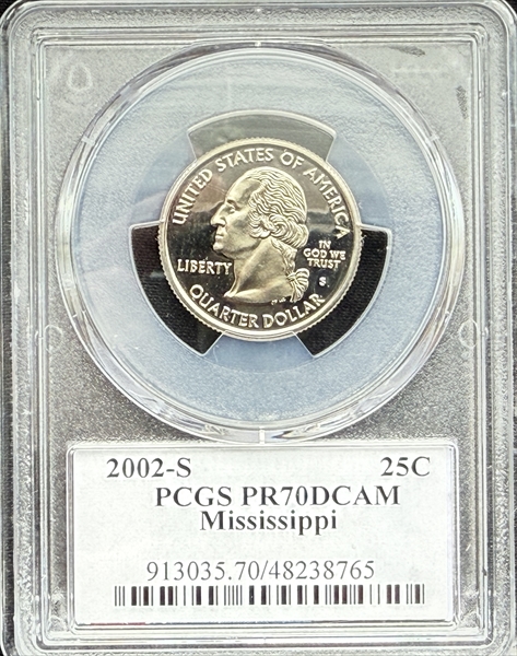 2002-S 25C Mississippi, DCAM PR70DCAM Certification #48238765, PCGS #913035