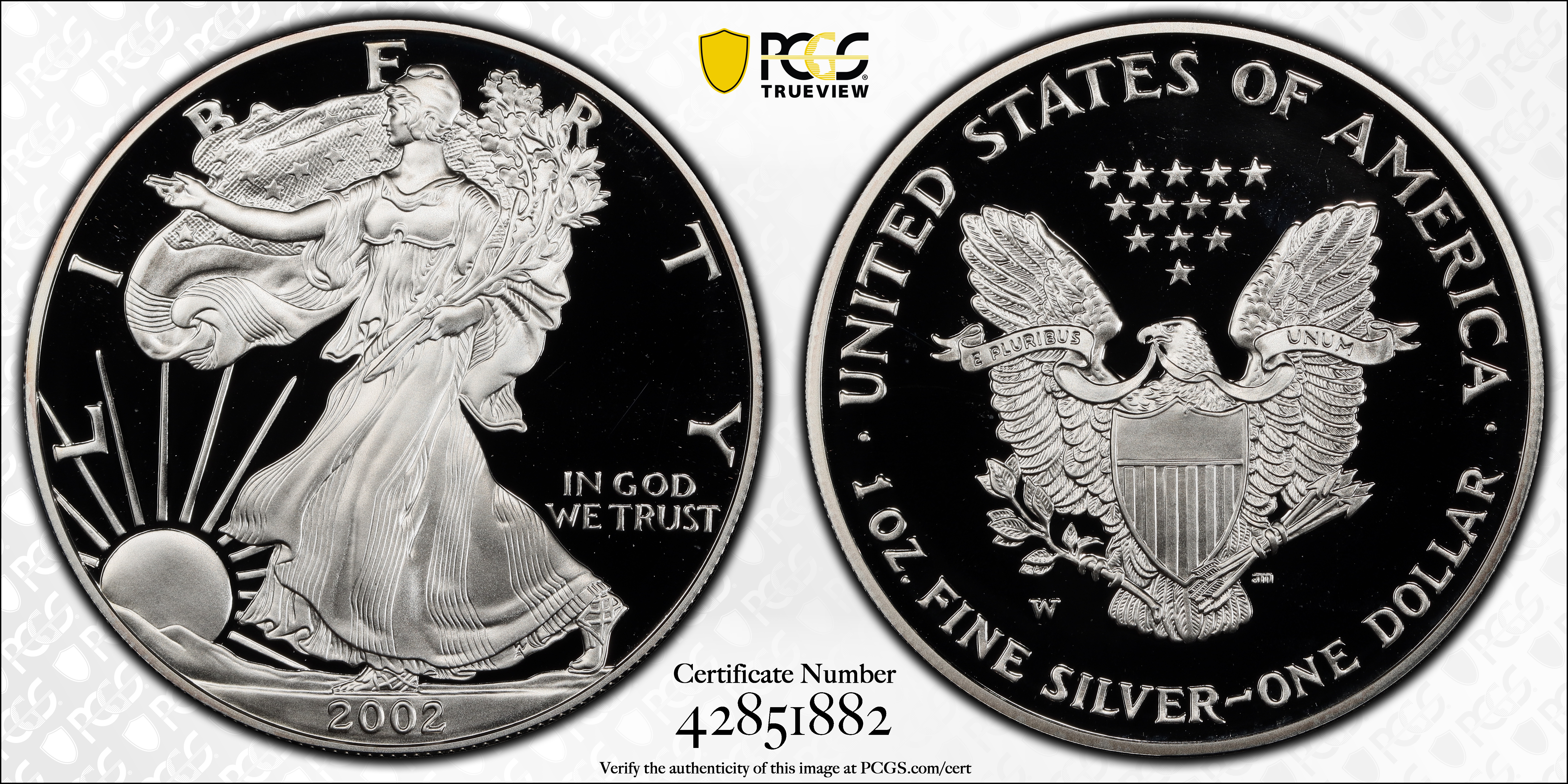 2002-W $1 Silver Eagle, DCAM PR69DCAM Certification #42851882, PCGS #99959