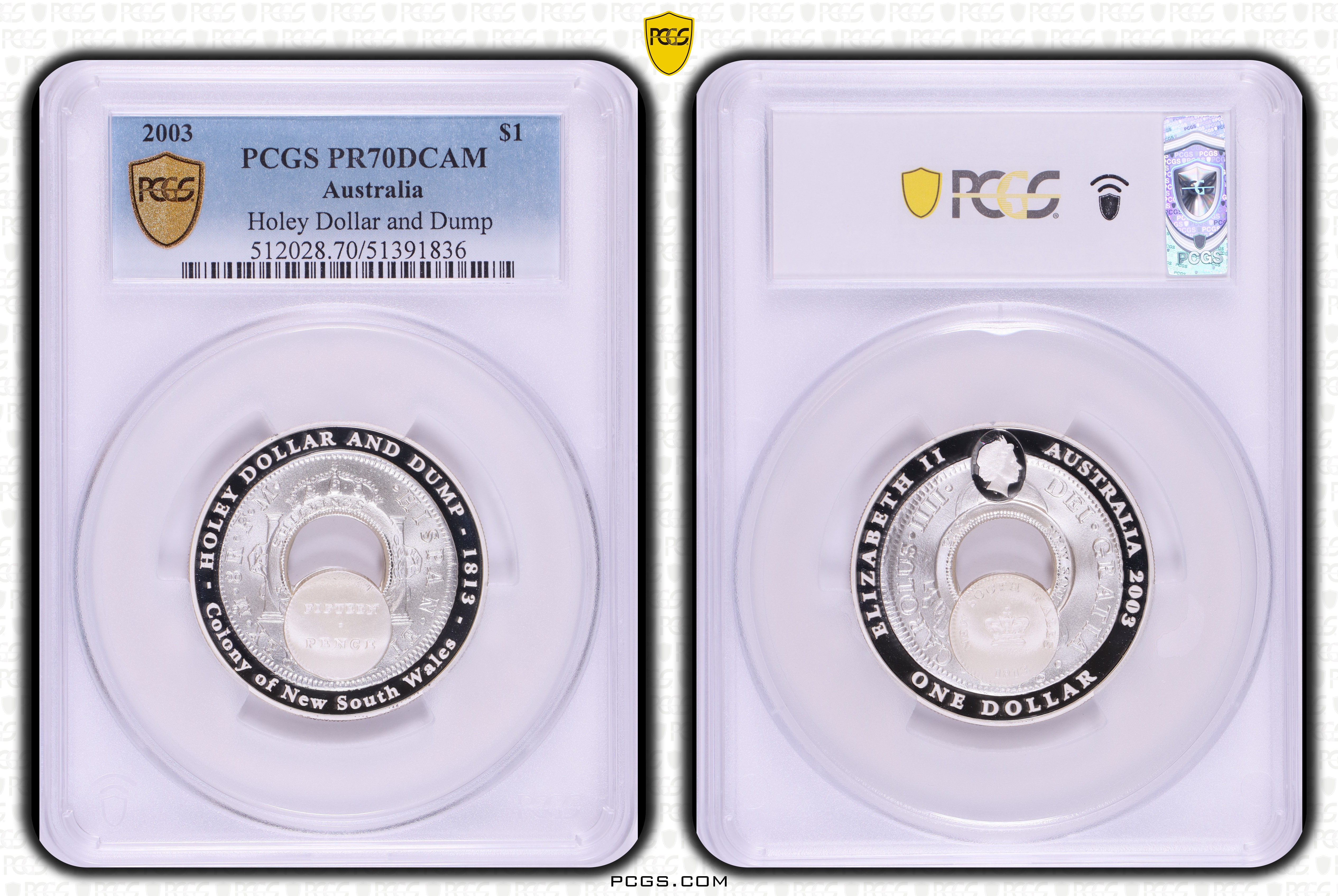 2003 $1 Holey Dollar and Dump, DCAM PR70DCAM Certification #51391836, PCGS #512028