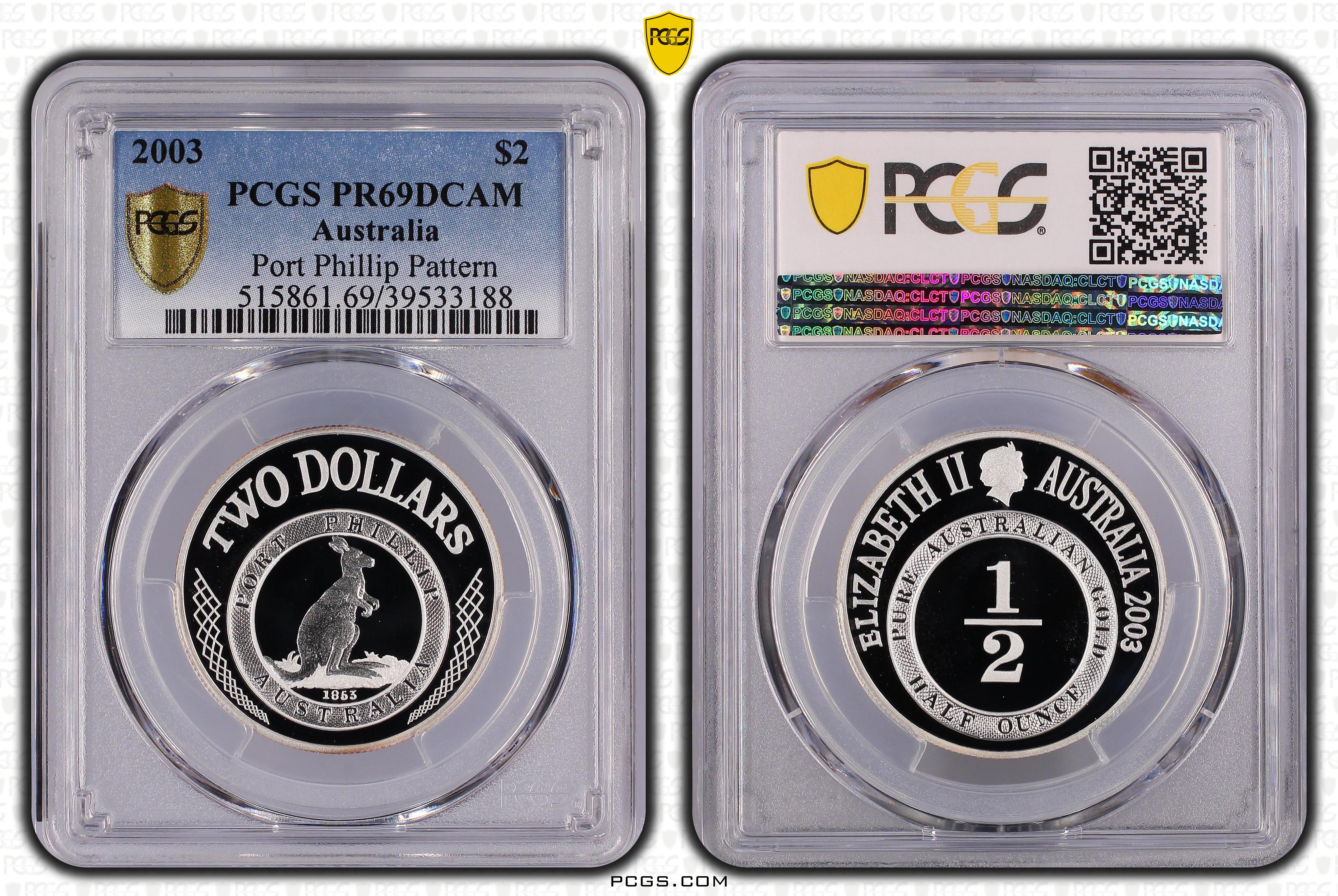 2003 $2 Port Phillip Pattern, DCAM PR69DCAM Certification #39533188, PCGS #515861