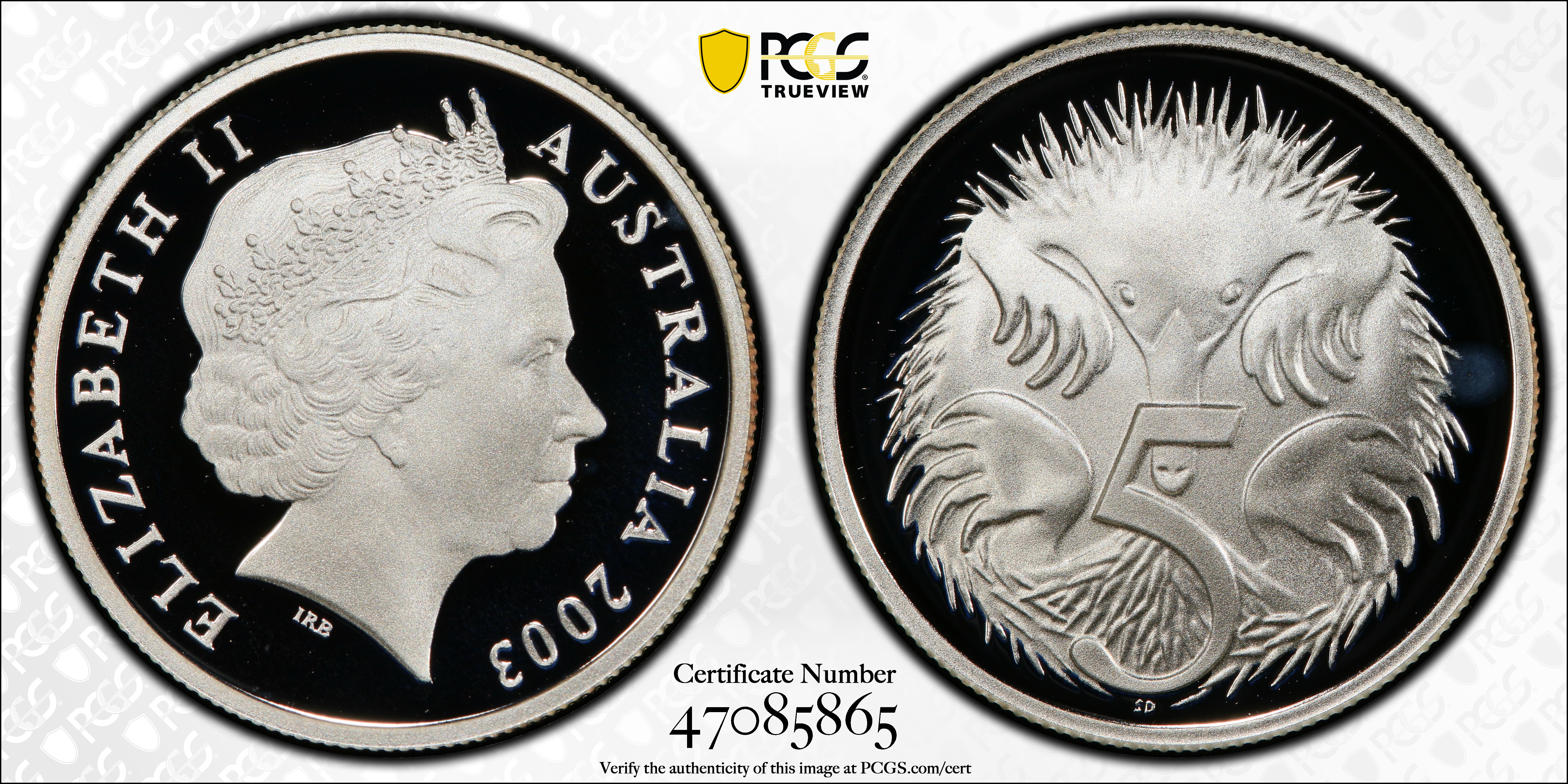 2003 5C Silver, DCAM PR70DCAM Certification #47085865, PCGS #398234