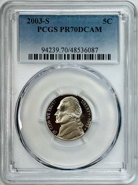 2003-S 5C, DCAM PR70DCAM Certification #48536087, PCGS #94239