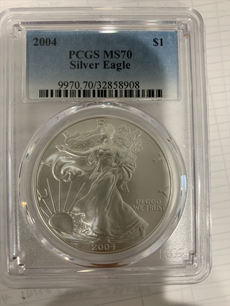 2004 $1 Silver Eagle MS70 Certification #32858908, PCGS #9970