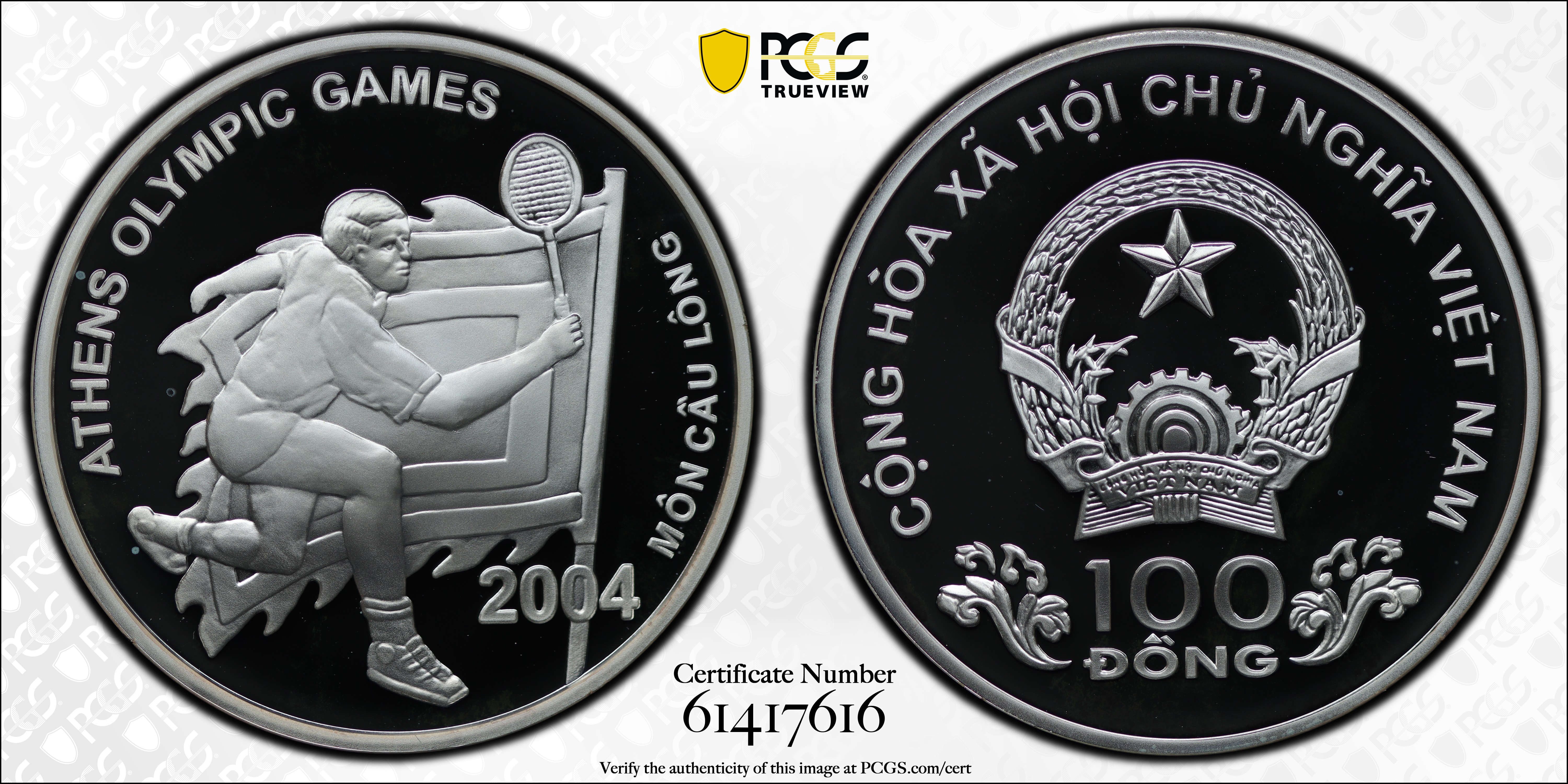 2004 100 D Badminton Olympics Athens, DCAM PR69DCAM Certification #61417616, PCGS #929418
