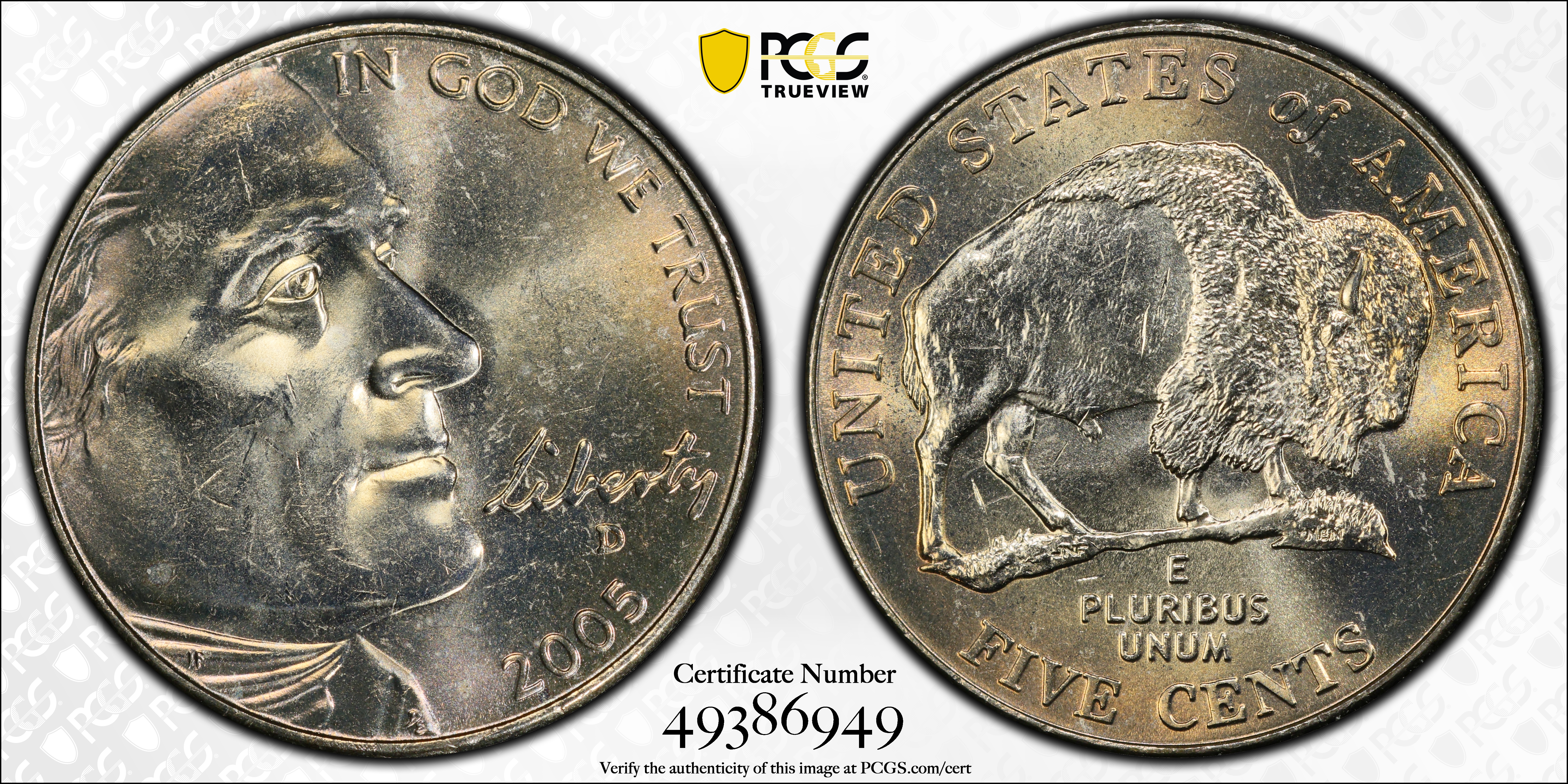 2005-D 5C Bison MS64 Certification #49386949, PCGS #4159