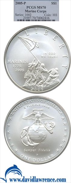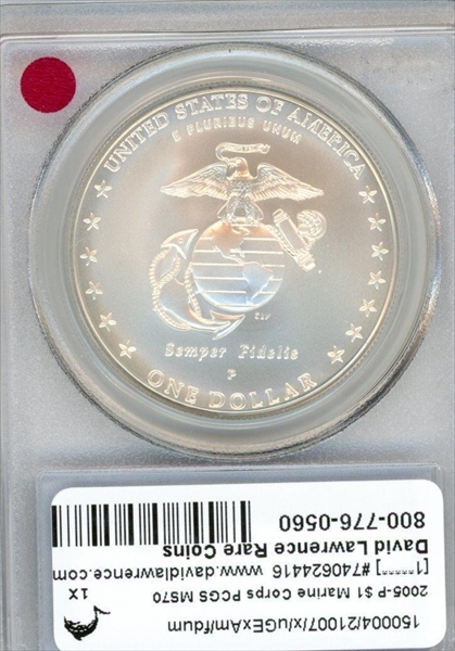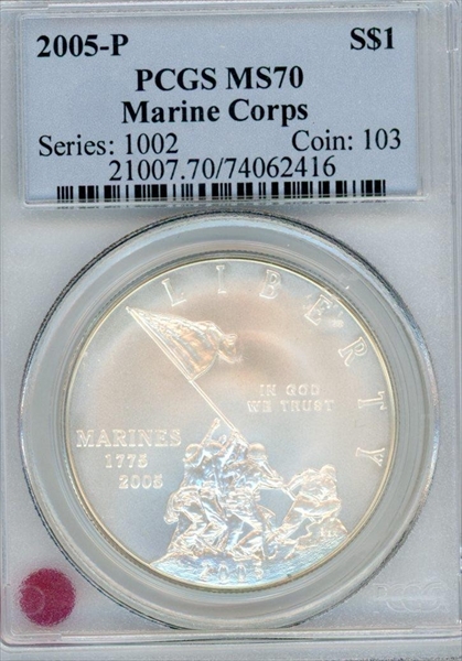 2005-P $1 Marine Corps MS70 Certification #74062416, PCGS #21007