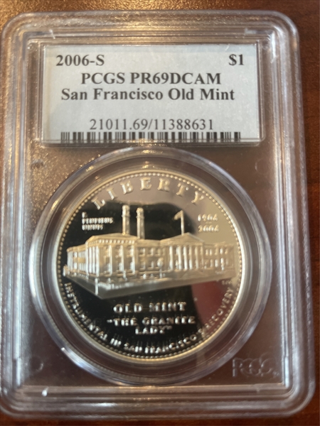 2006-S $1 San Francisco Old Mint, DCAM PR69DCAM Certification #11388631, PCGS #21011