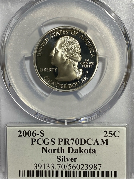 2006-S 25C North Dakota Silver, DCAM PR70DCAM Certification #56023987, PCGS #39133