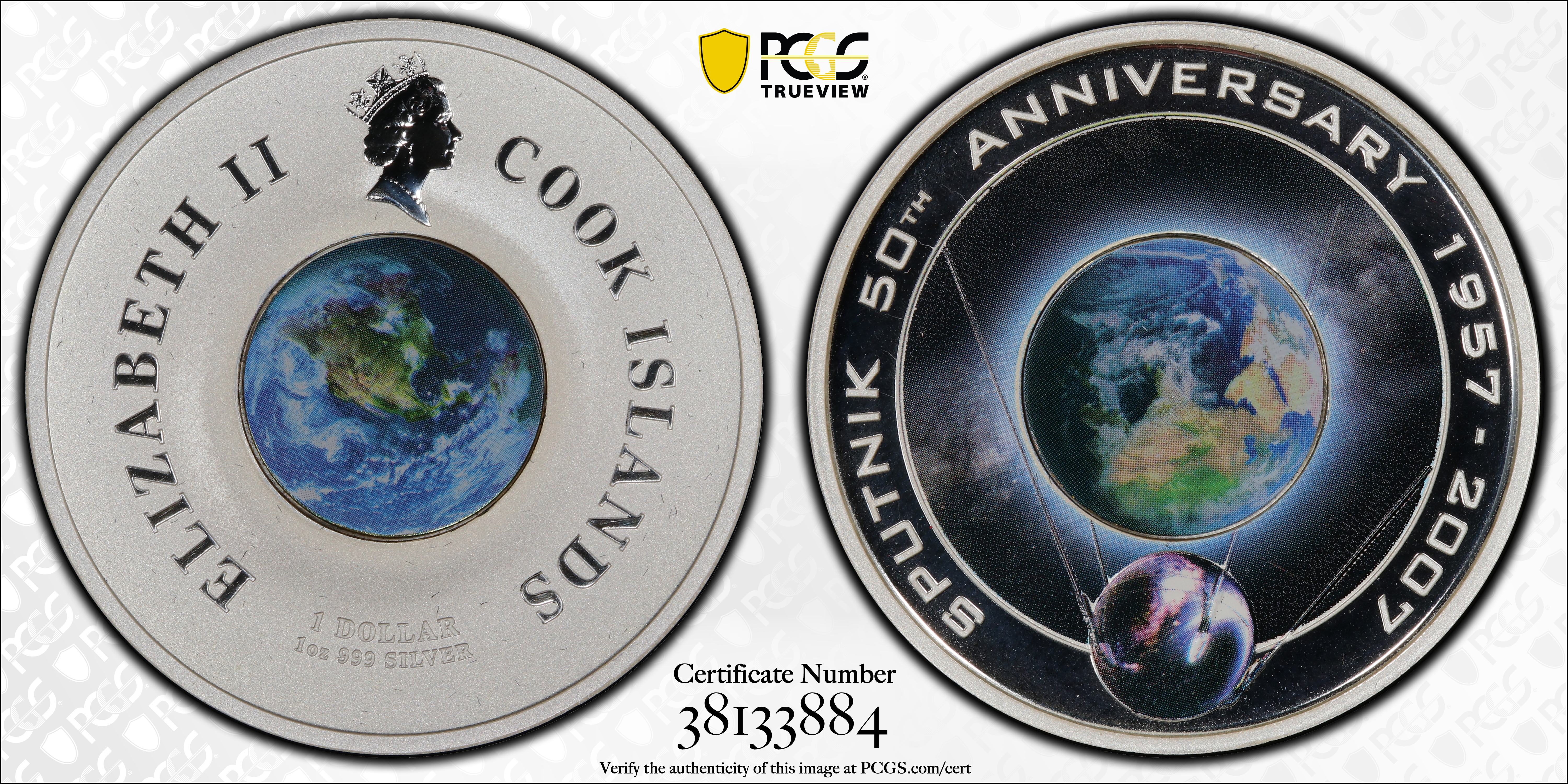 2007 $1 Sputnik 50th Ann. Colorized, DCAM PR69DCAM Certification #38133884, PCGS #507315