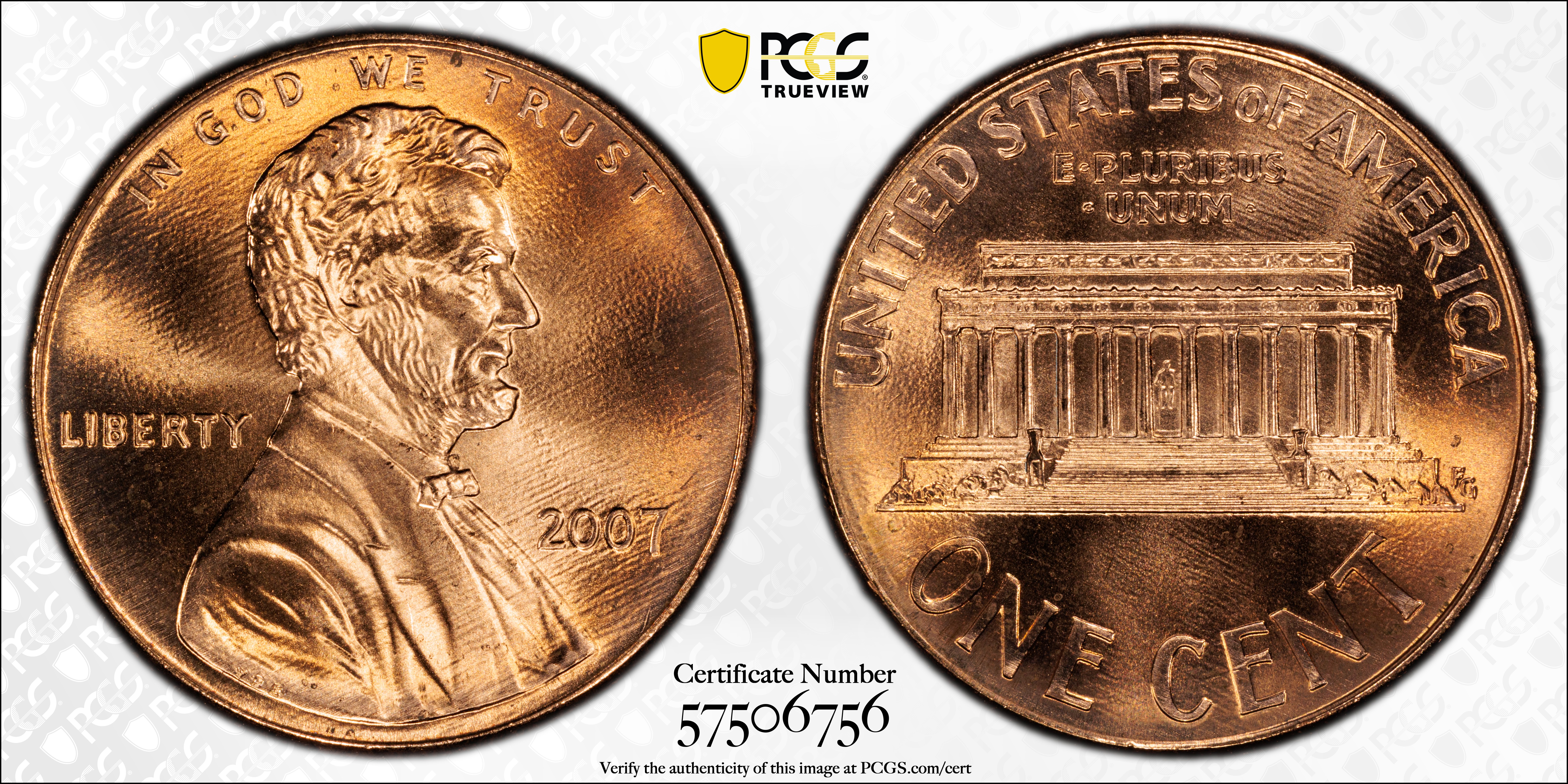 2007 1C, RD MS67RD Certification #57506756, PCGS #149538