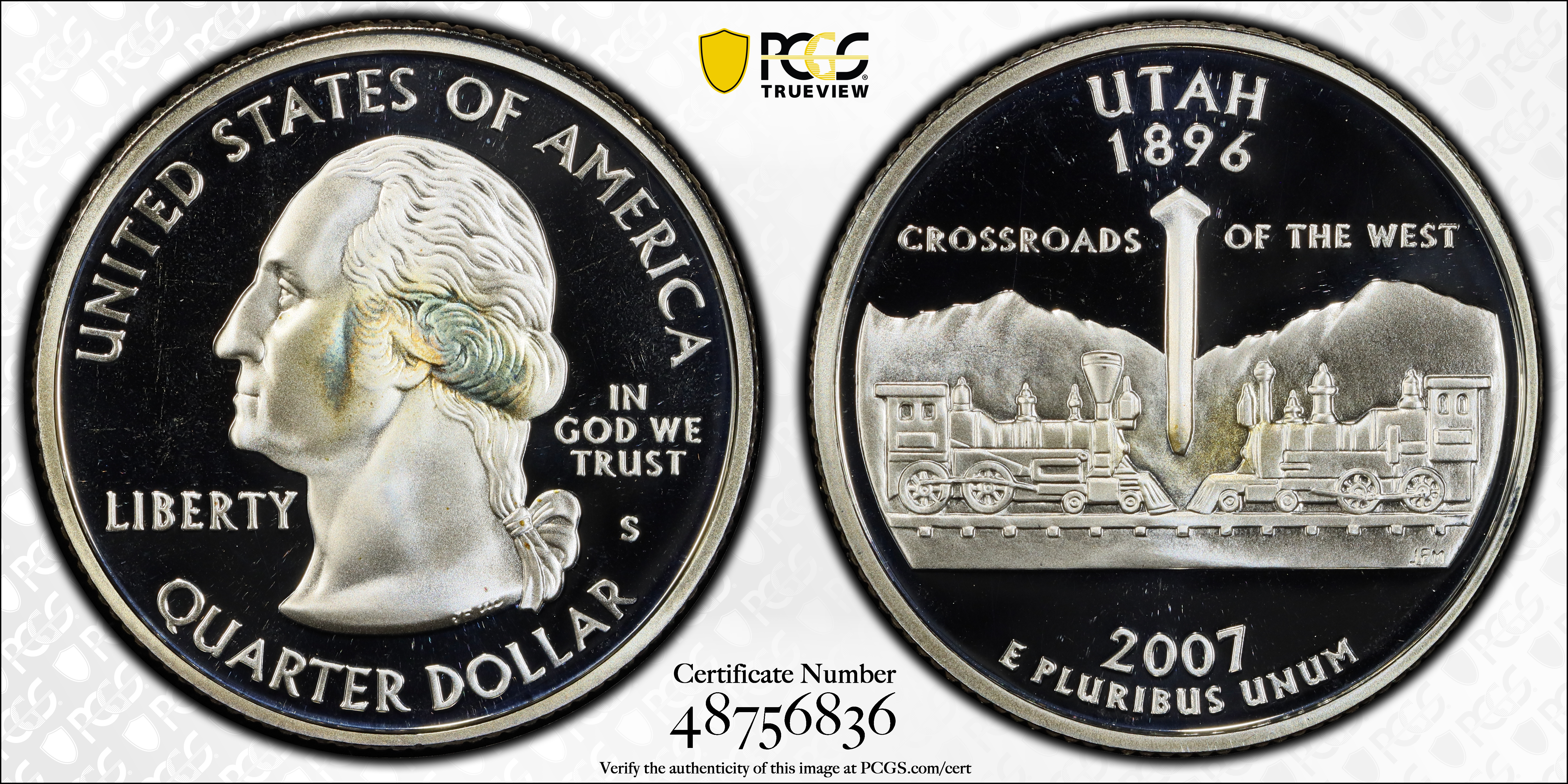 2007-S 25C Utah Silver, DCAM PR69DCAM Certification #48756836, PCGS #39169