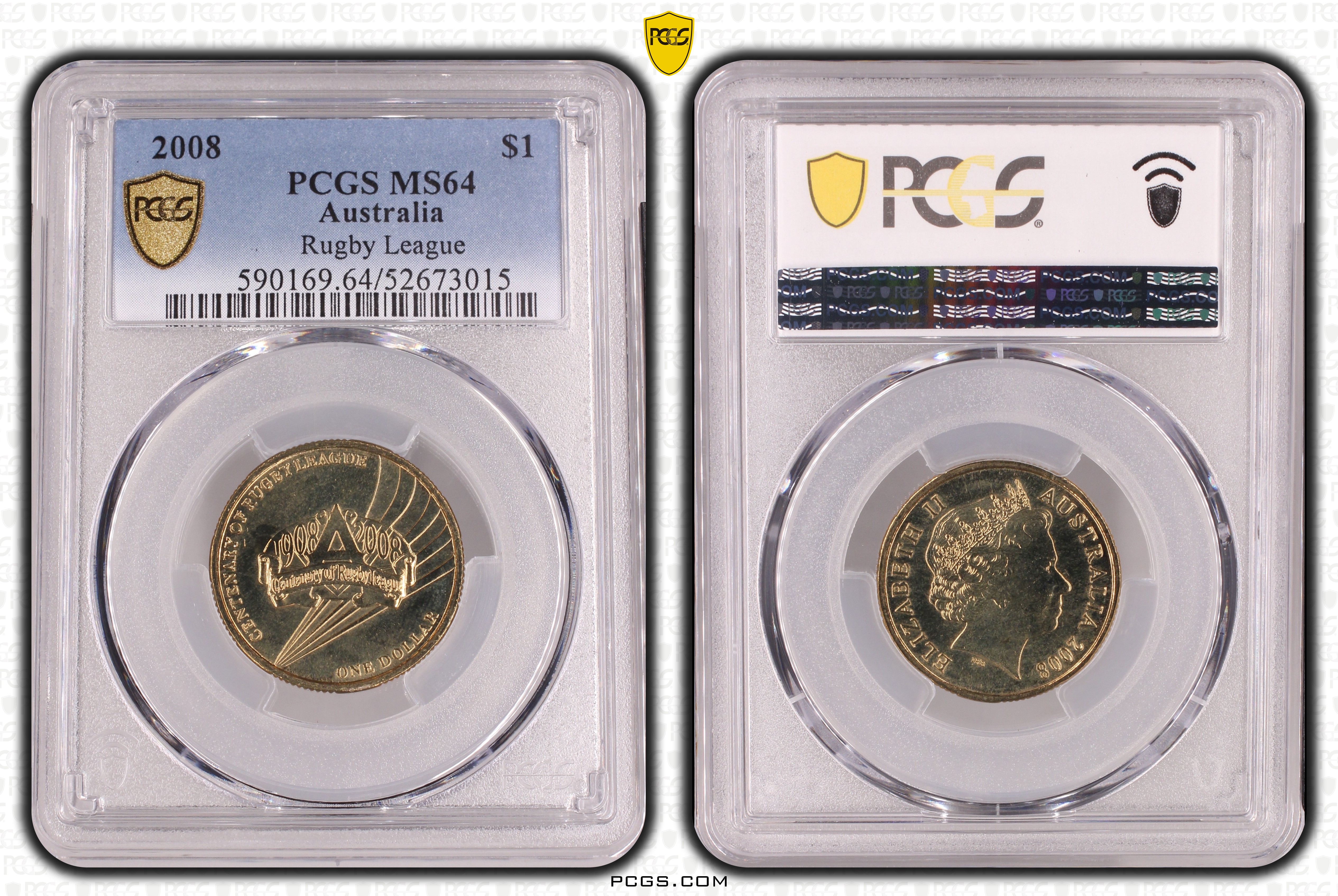2008 $1 Rugby League MS64 Certification #52673015, PCGS #590169