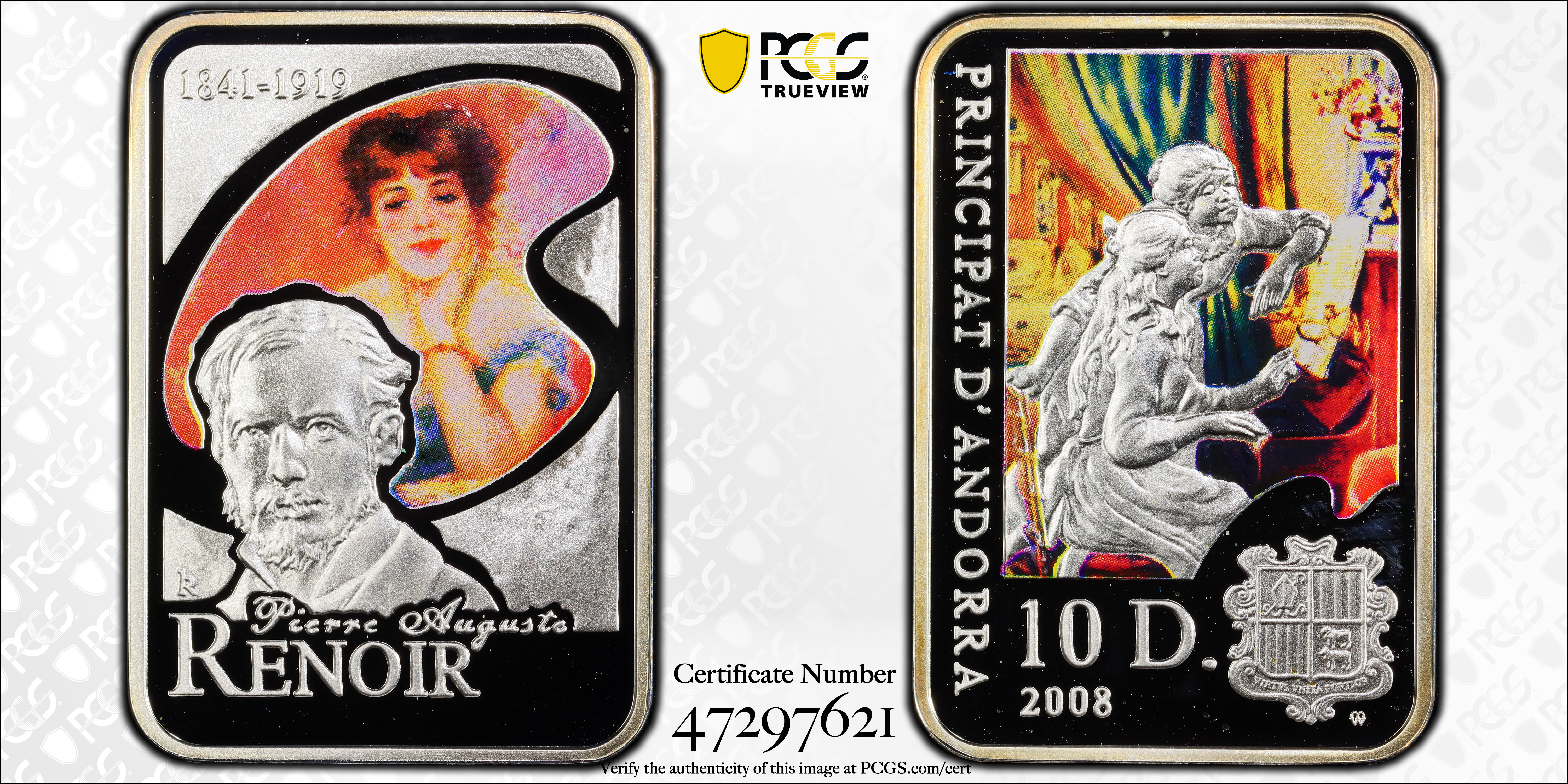 2008 10 Din Renoir Colorized, DCAM PR69DCAM Certification #47297621, PCGS #536885