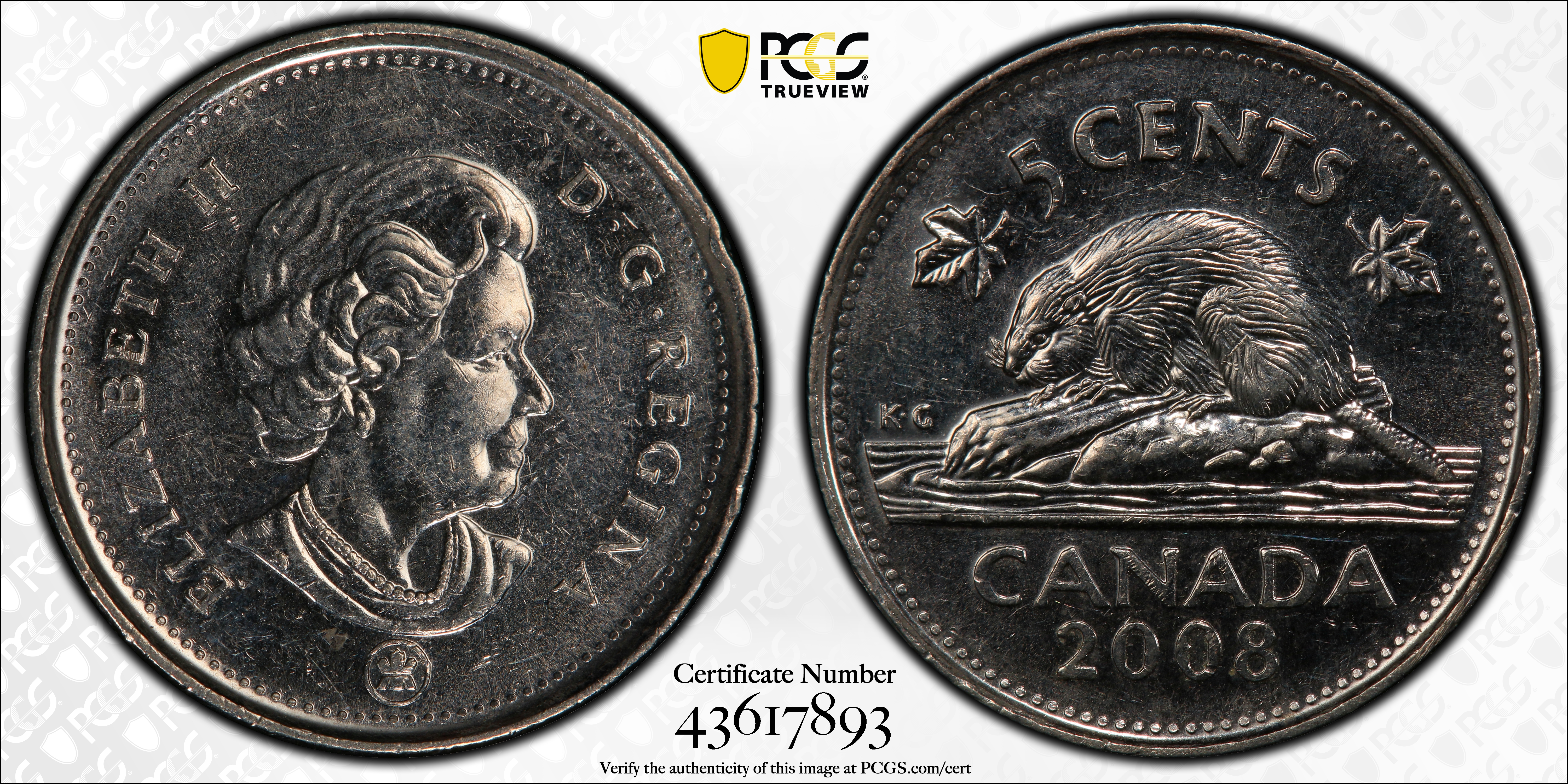 2008 5C AU58 Certification #43617893, PCGS #407715