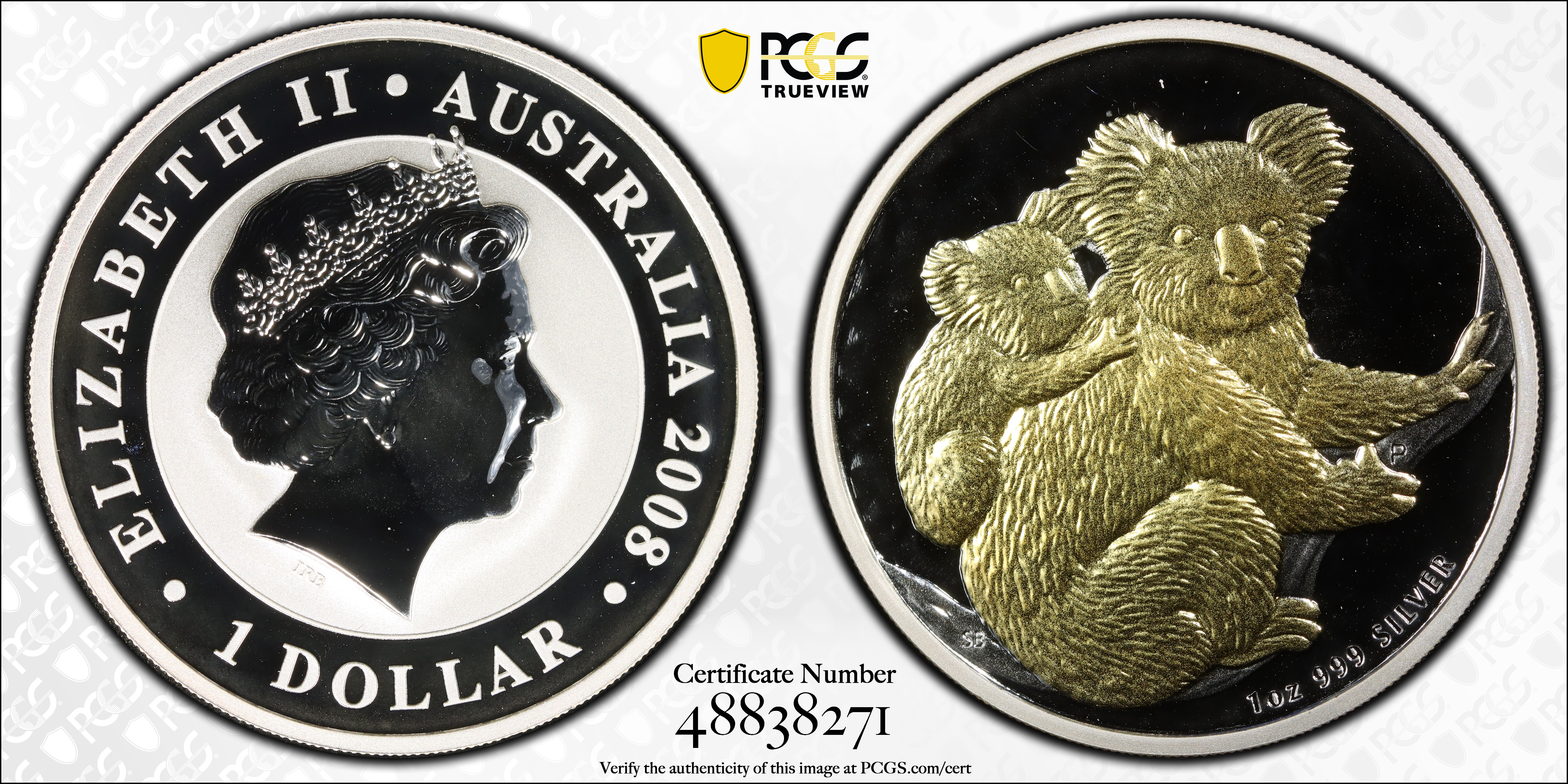 2008-P $1 Koala Ag Gilt SP69 Certification #48838271, PCGS #401207