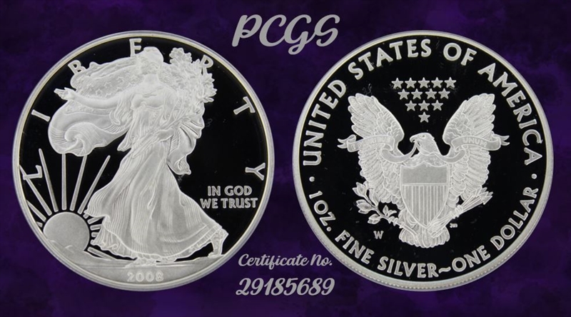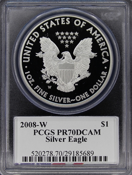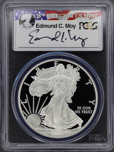 2008-W $1 Silver Eagle Moy Signature, DCAM PR70DCAM Certification #29185689, PCGS #520278