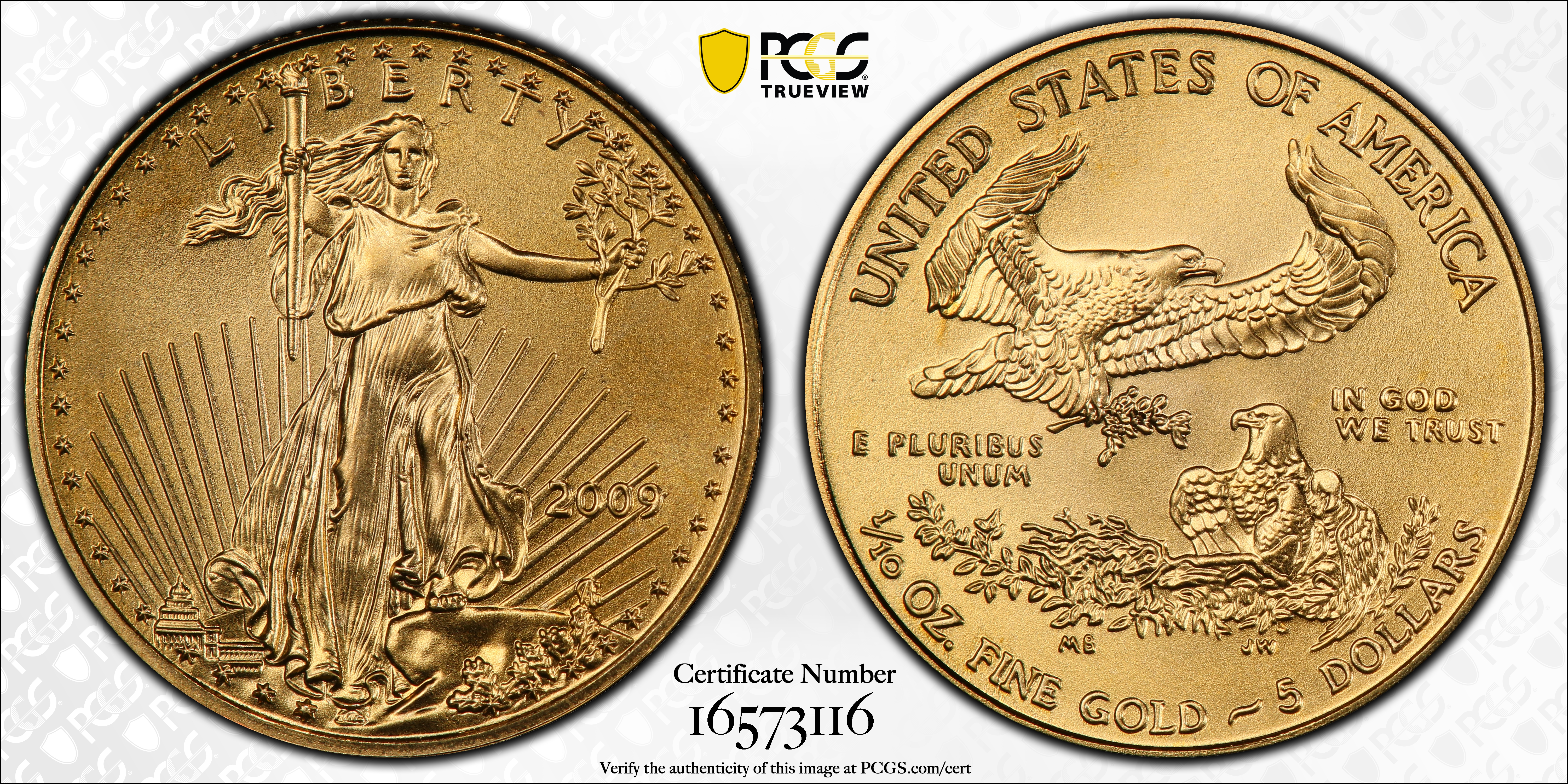 2009 $5 Gold Eagle MS70 Certification #16573116, PCGS #404429