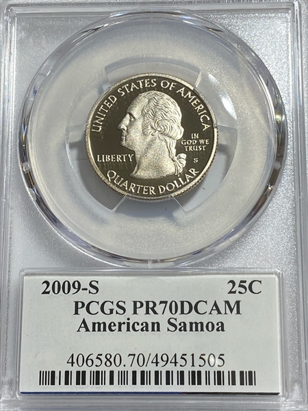 2009-S 25C American Samoa, DCAM PR70DCAM Certification #49451505, PCGS #406580