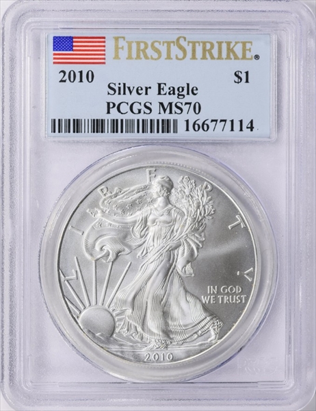2010 $1 Silver Eagle First Strike MS70 Certification #16677114, PCGS #415533