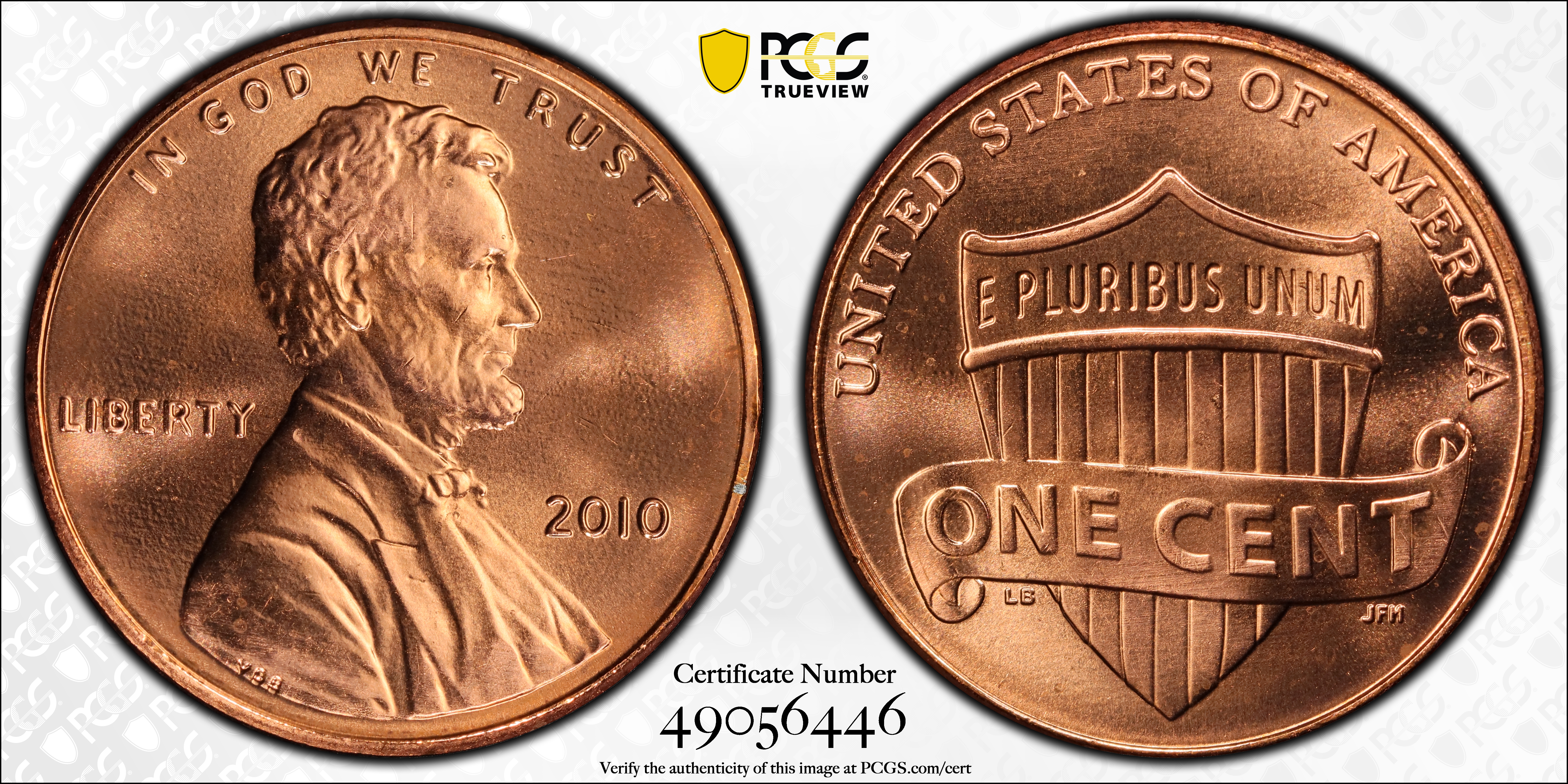 2010 1C Shield, RD MS67RD Certification #49056446, PCGS #416668
