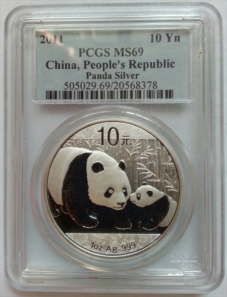 2011 10 Yn Panda Silver PAN-543A MS69 Certification #20568378, PCGS #505029