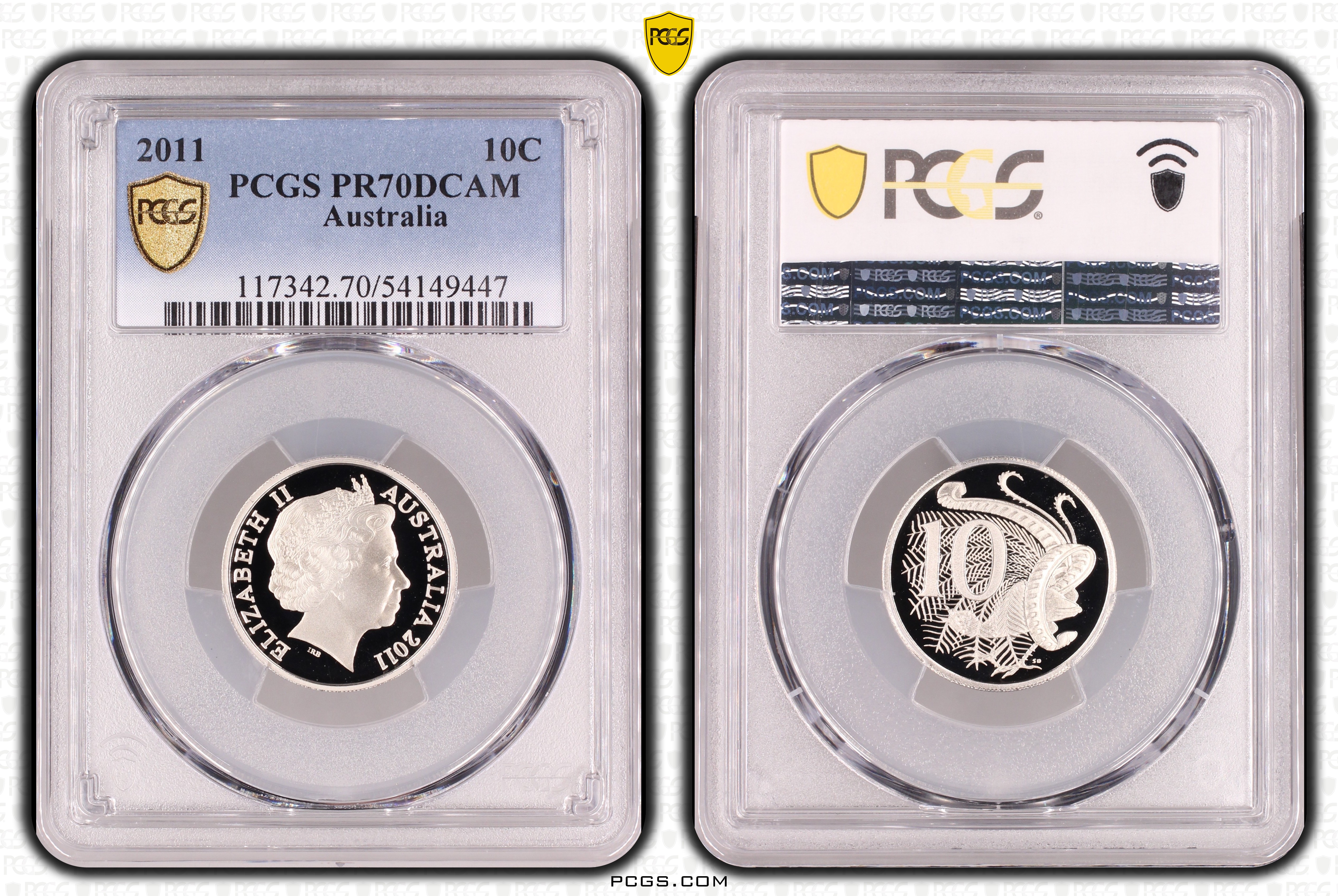 2011 10C, DCAM PR70DCAM Certification #54149447, PCGS #117342