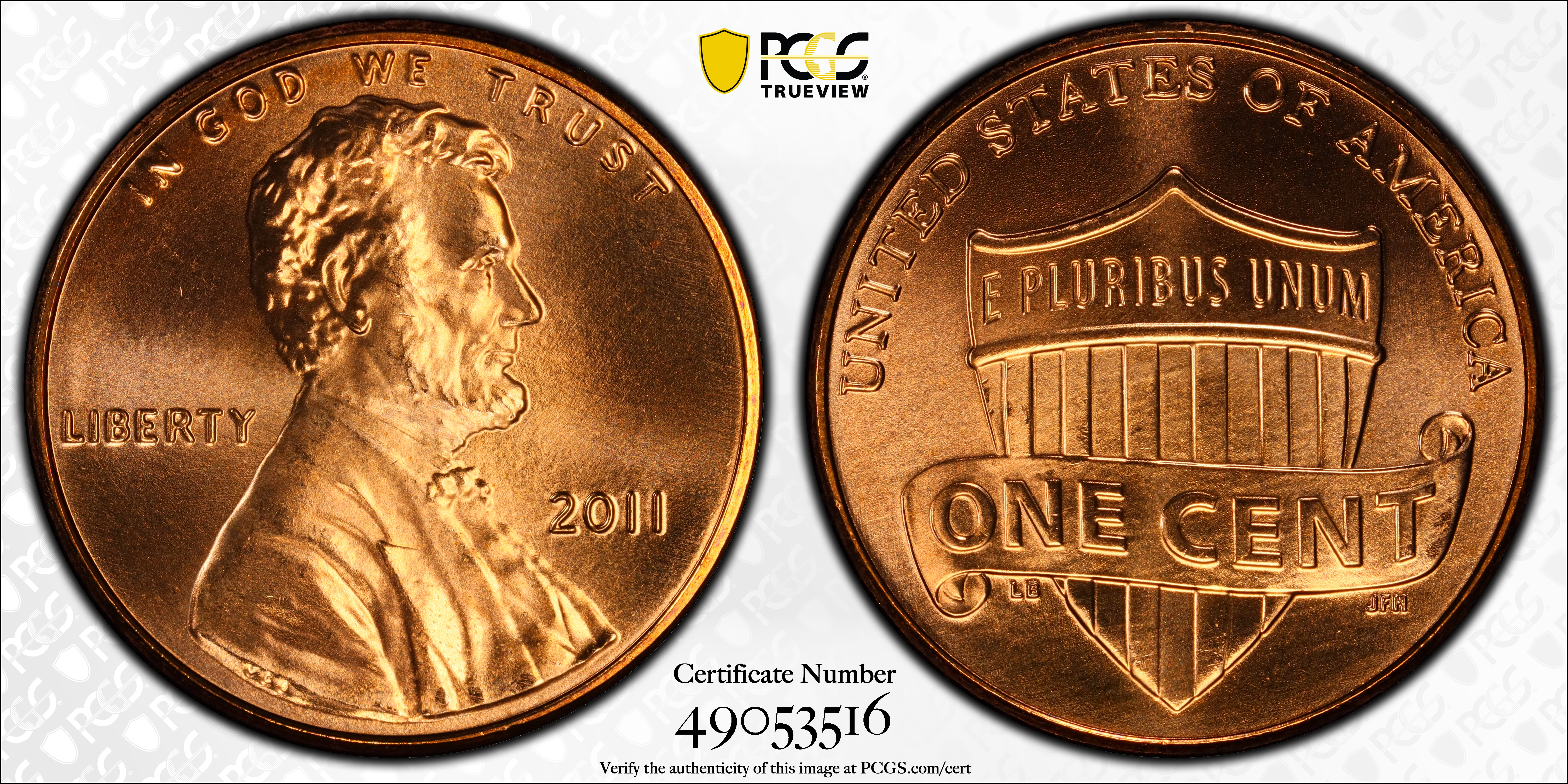 2011 1C Shield, RD MS68+ RD Certification #49053516, PCGS #505055