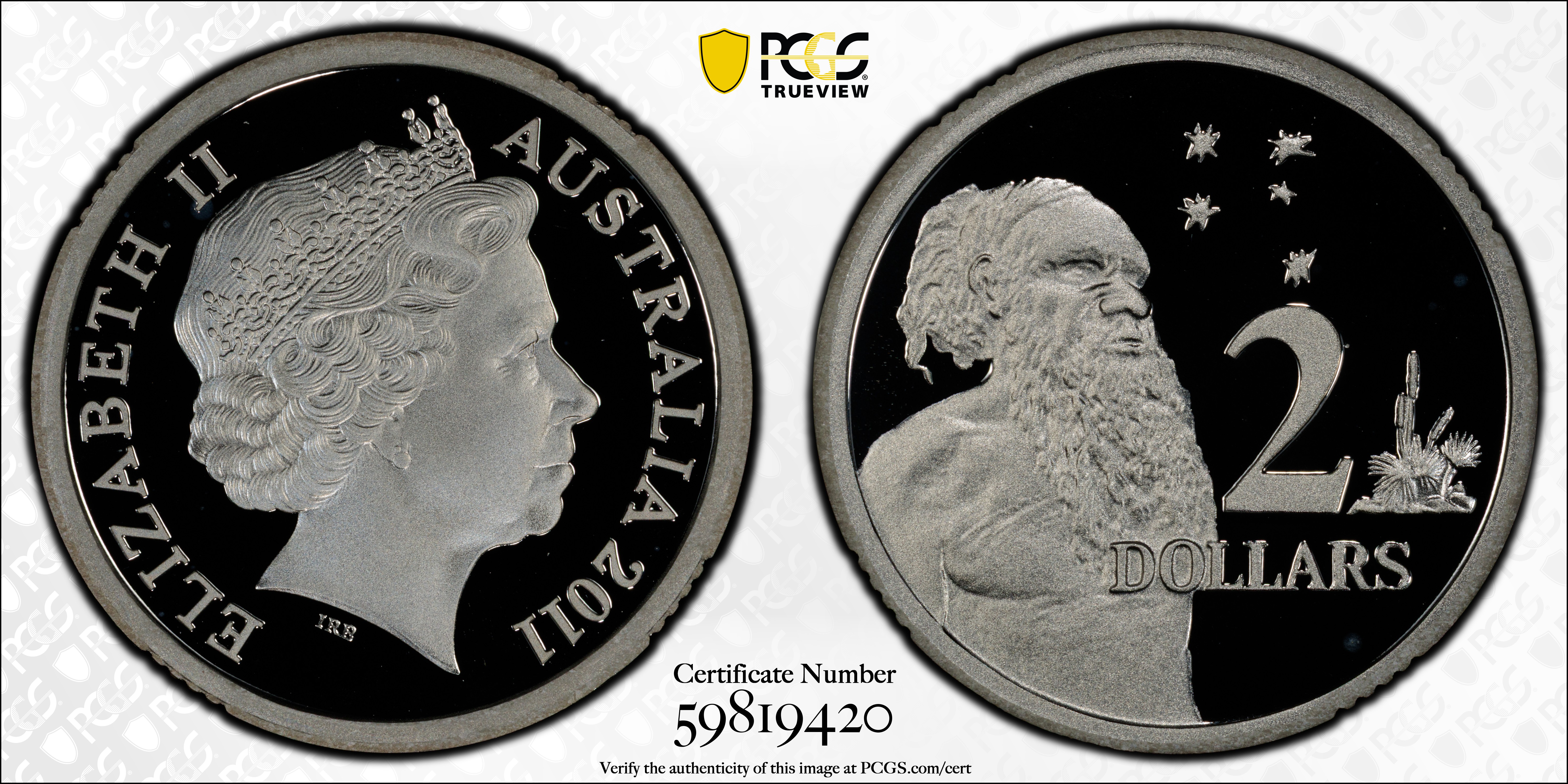 2011 $2 Silver, DCAM PR69DCAM Certification #59819420, PCGS #74751